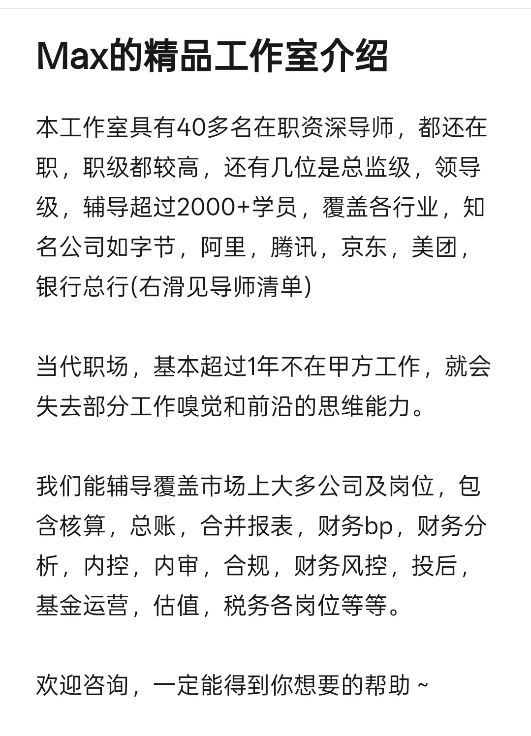 上面的内容仅代表本工作室所帮忙谈过的学员样本,但也不是全部全部学员都可以。