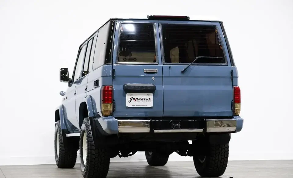 这台1994年丰田普拉多SX以31995美元的价格被买家收购,这台车究竟有何魅力?1994款丰田普拉多属于该系列的第一代车型,代号为J70。虽然号称为第一代版本,但这台车还有一个前身车型也叫做J70,是1984年11月份作为丰田陆地巡洋舰的“轻型版”而推出的,只提供双门短轴版车型。因此我们可以认为,丰田普拉多最初是以陆地巡洋舰短轴版为目的而研发的。来到1990年4月份,普拉多开始作为一款独立车型面向市场,相比于其前身车型,普拉多做了很多改变。外观方面,前格栅、前挡泥板、发动机罩和前照灯都经过重新设计。而底盘方面,前悬架改为“通过弹簧减震”设计,改善了操控性,虽然整台车的越野性能得以保持,但公路通勤能力也大大增强。图中这台车拥有蓝色车身,玻璃张贴了茶色太阳膜,看起来颇为高档。如今硬派越野车均在走复古造型设计,仿佛只有方方正正才能凸显越野车的属性。而这台1994年的丰田普拉多不需要复古,其本身便是前辈之一。内饰颇有年代感,不过,很显然前任车主对其进行了现代化升级,中控位置安装了一台带屏幕的先锋播放器,带有导航和音乐播放功能,虽然比起现代的产品毫无科技可言,但也能满足现代人对于用车的基本需求。由于车身采用“方盒子”一般的造型设计,因此空间利用率比较出色,加之车身长度达到了4.5米,日常使用绰绰有余。1993年之后的版本中,22R-E汽油发动机被2.7 L (2,693 cc) 3RZ-FE汽油发动机取代,2L-TE涡轮增压柴油发动机被3.0 L (2,982 cc) 1KZ-T涡轮增压铝制柴油发动机取代气缸盖。图中这台车所搭载的便是3.0L 1KZ-T涡轮增压发动机,这款发动机坚固耐用,故障率较低,时至今日仍是越野玩家钟爱的机型。