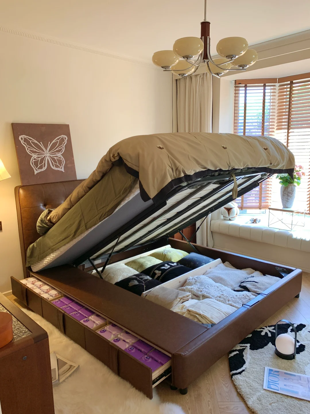 日常用的抱枕、纸巾、衣物就都塞到床里啦