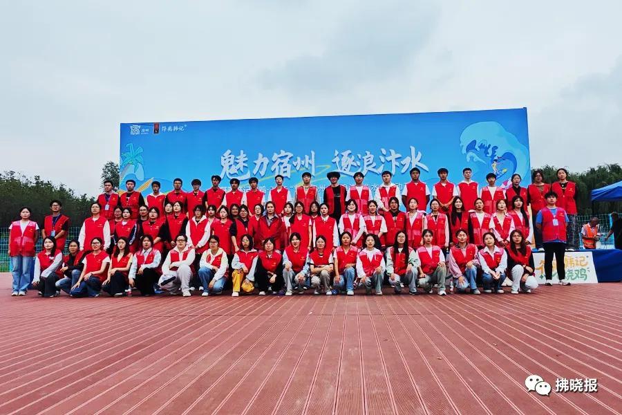 10月1日上午,符离韩记烧鸡·2025“魅力宿州逐浪汴水”水上运动系列赛暨千人横渡新汴河公开水域游泳比赛在宿州市水上运动训练基地举行。赛场上,来自全国多地的千名游者齐聚宿州,在搏浪击水后勇渡新汴河。赛场外,来自皖北卫生职业学院的70名志愿者,用热忱与专业筑起保障防线。这抹跃动的“志愿红”,织就了赛场边最动人的风景。