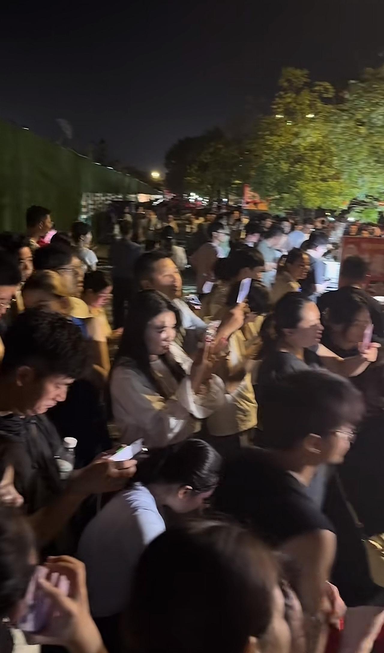 这下子场面真的控制不住了, 看鸡排哥脸上的表情就知道, 可能这也是头一次有人因为生意太火爆而发愁吧。 鸡排哥愁容满面,眉头更是紧缩,仿佛前面不是鸡排,而是自己的敌人。 看看鸡排哥胳膊上的油,就知道他今天有多么忙碌了,油光配上他青筋暴起小臂,倒是显得非常有型。 现如今,天已经完全黑了,而鸡排哥摊前的队伍依旧很长,而且被围的水泄不通,这要是都卖完了,估计天都得亮了吧。 鸡排哥现在肯定很想校门口摆摊的日子,每天定时出摊,定时收摊,也挺幸福的。