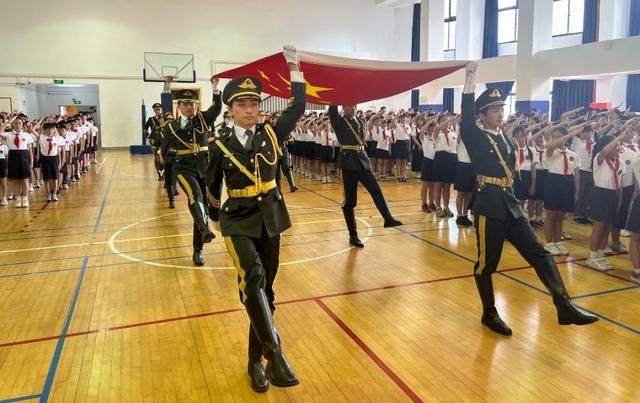 庄严的仪式,是信念的传递。上海理工大学附属普陀实验学校举办了国旗交接仪式。仪式上,国旗护卫队迈着整齐正步出旗,上一届队员郑重地将国旗交予新队员,伴随雄壮国歌,国旗冉冉升起。全体少先队员肃立致敬,以庄严仪式传递守护国旗、报效祖国的坚定信念。
