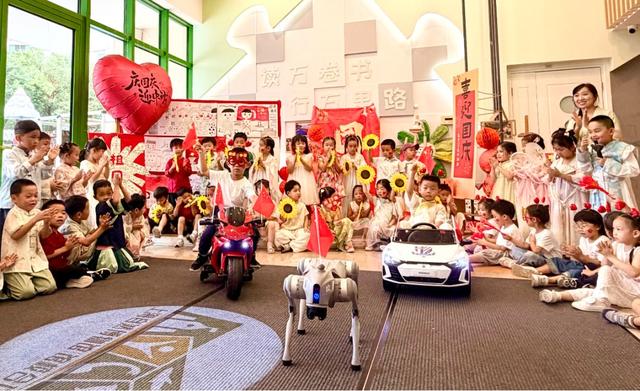 万里城实验幼儿园的迎国庆活动热闹非凡。孩子们用稚嫩的歌声唱出热爱,而机器狗“小万里”也惊喜亮相,加入节日方阵,以灵动舞姿送上别样祝福。