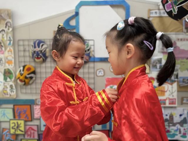 海贝尔幼儿园的孩子们小心翼翼地为彼此系好衣扣,稚嫩的脸庞上满是认真。他们要用最甜的歌声和最美的舞姿,献上最纯真的祝福。