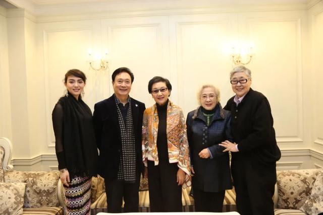 2014年11月在上海电影博物馆,左起居文沛、梁波罗、夏梦、秦怡、杨洁(夏梦妹妹)
