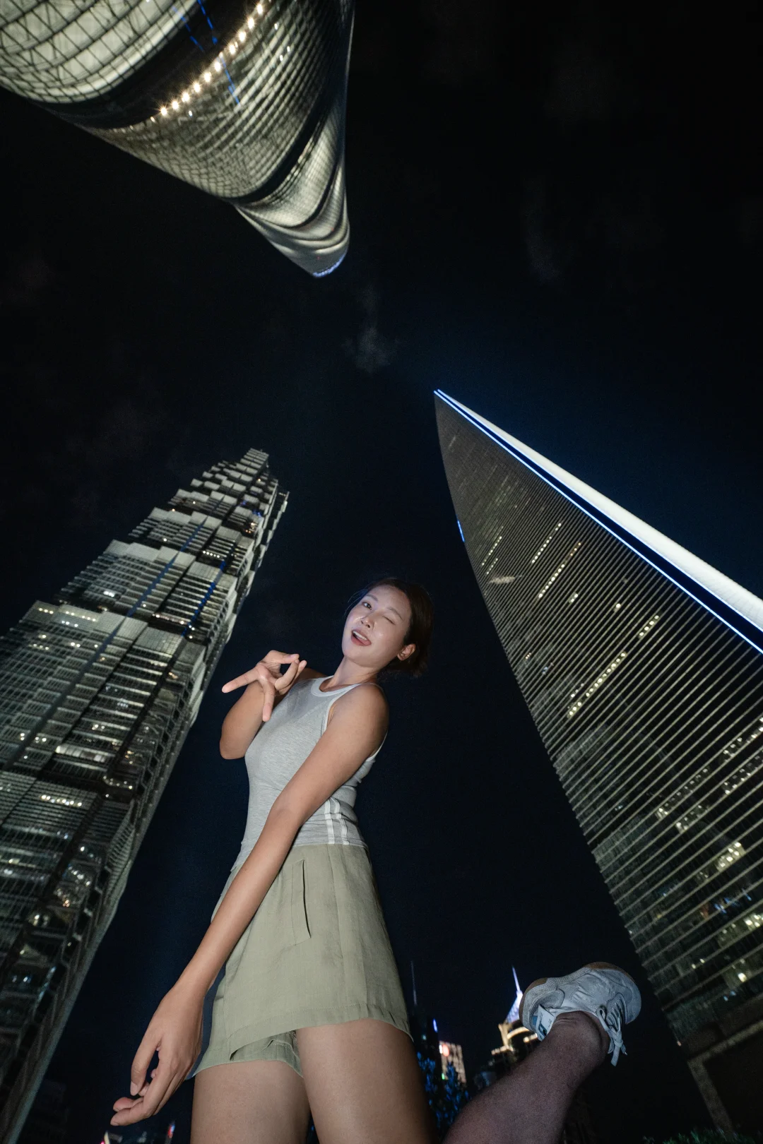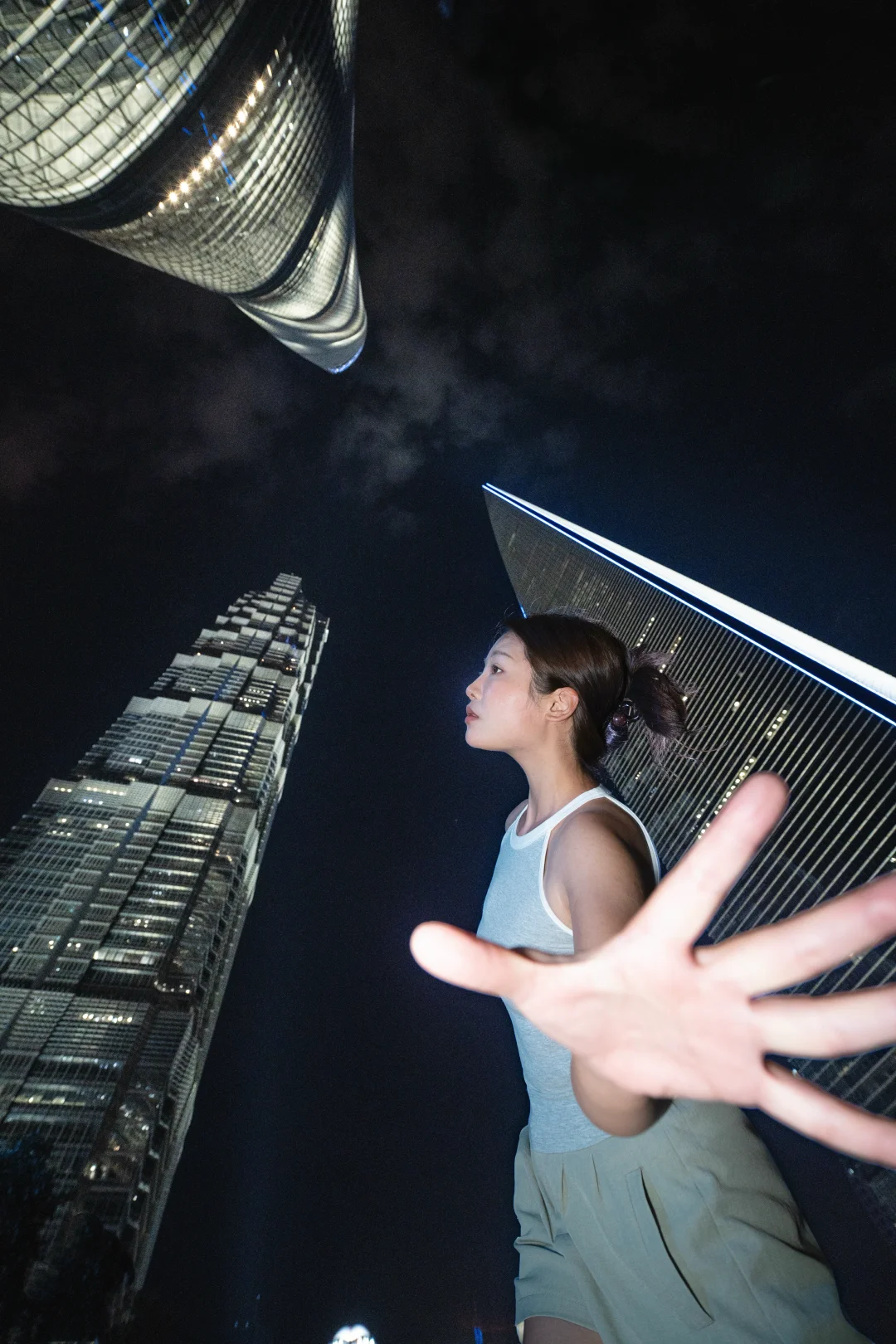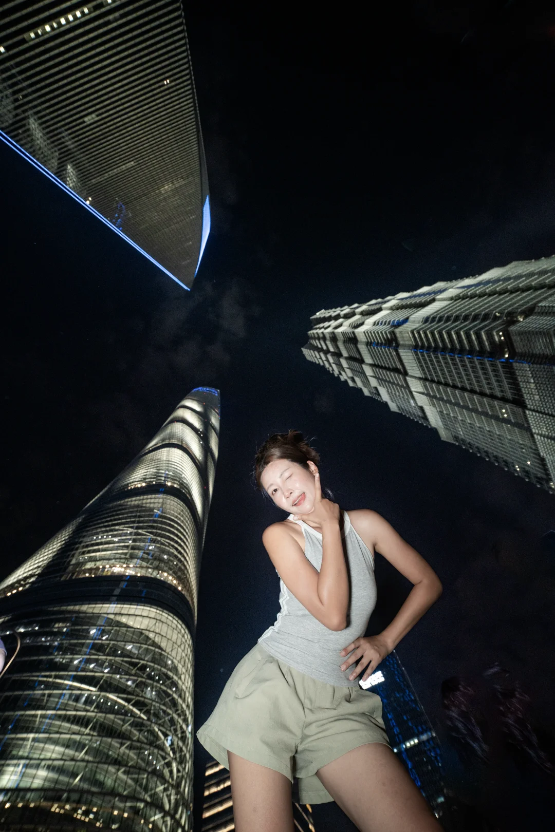 这个十字路口很多机位都能拍,越靠近马路边边机位越好。不要走到金茂大厦门口那一条。