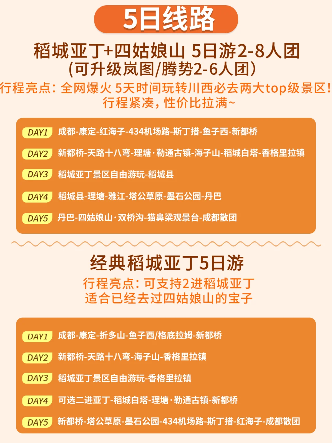 5天TOP A线 5天时间机具性价比 打卡两大川西必去景区!