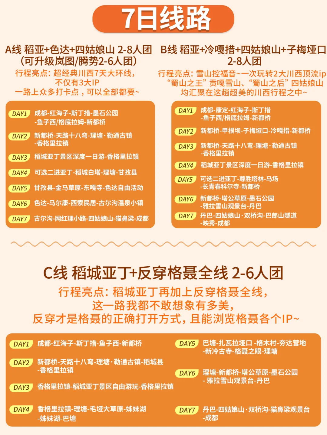 7天TOP A线 真正意义上的川西大环线!大景点 小景点都有 回去直接变身川西资深玩家~