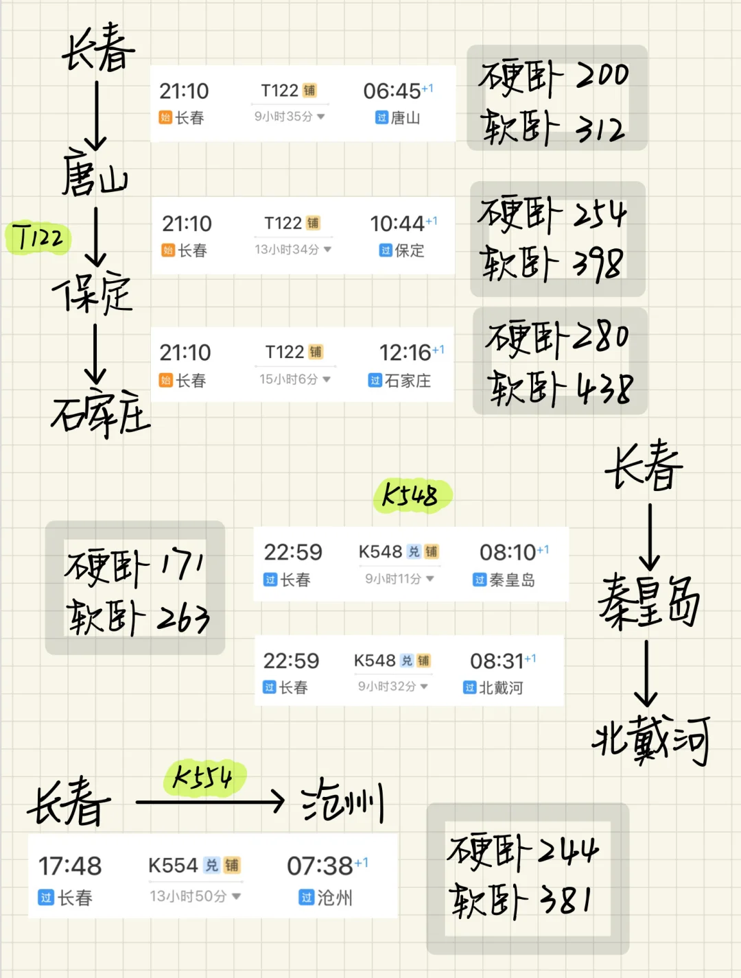 夜间出发 睡一觉可达 对于睡眠好的宝子非常友好 按省份分页(辽宁 内蒙 京津放在一页了)