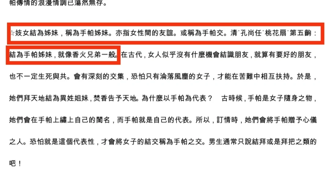 [三R]相较于教坊女子以“香火兄弟”命名自己,“手帕姊妹”选取“手帕”来自我命名更具有女性气质。