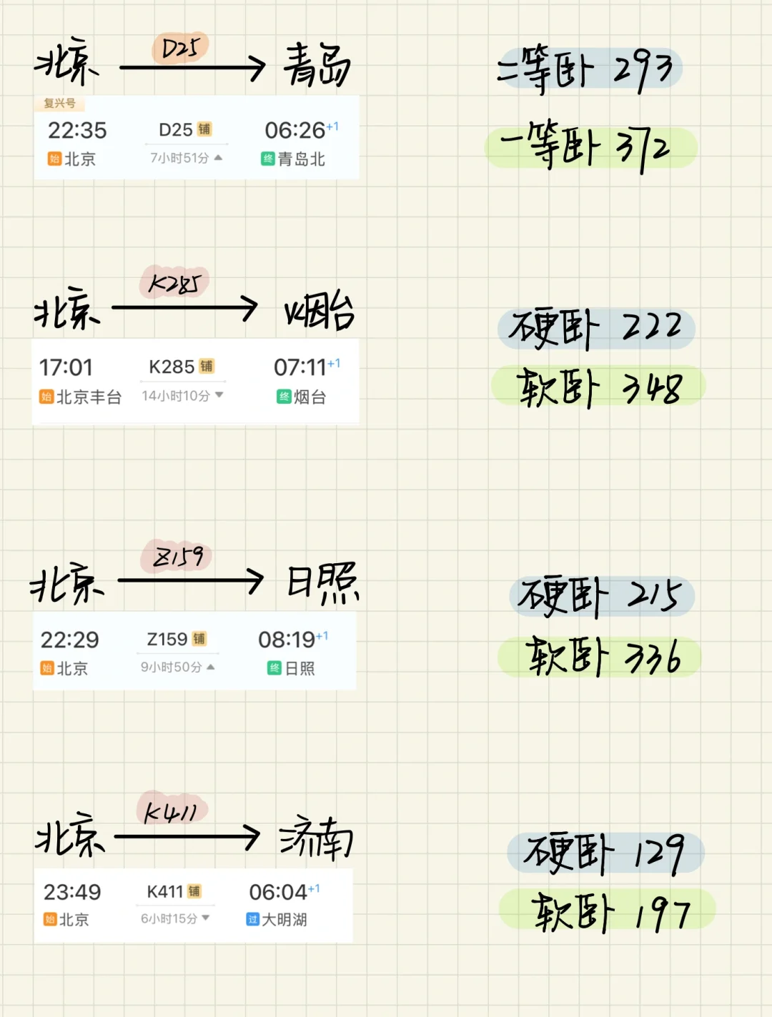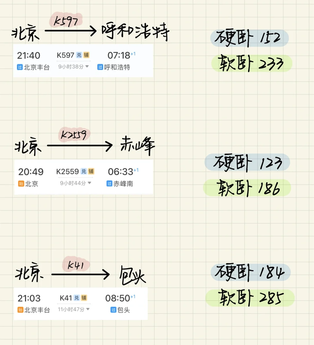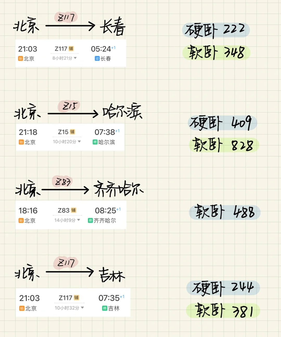 北京🚄出发 卧铺一夜可达城市