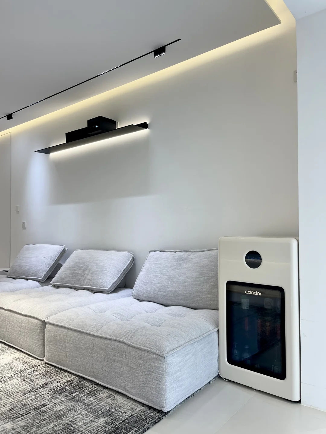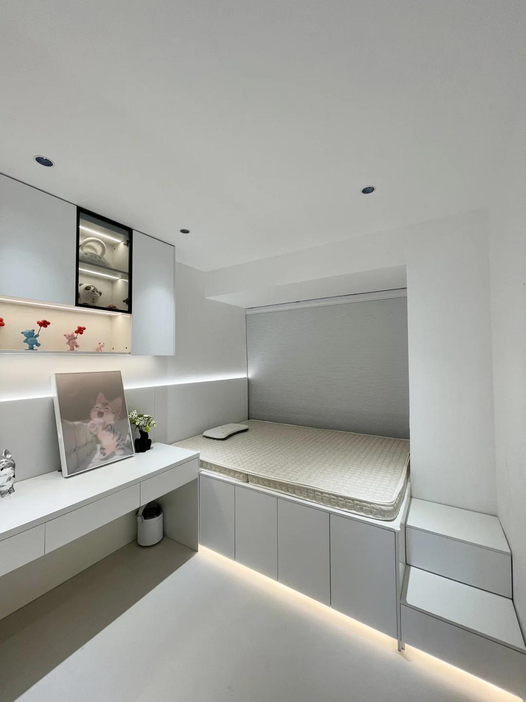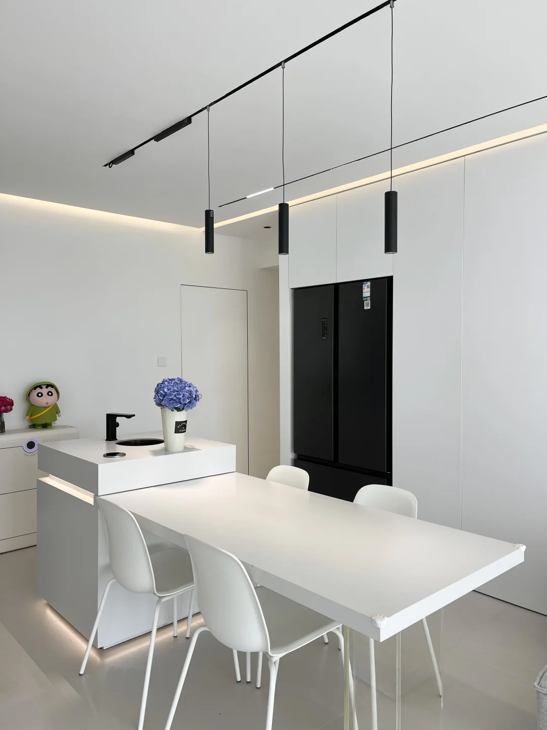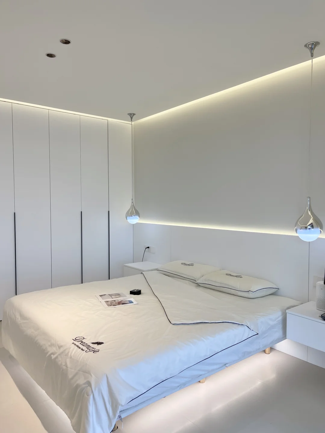客厅是通铺柔光砖➕无主灯设计,🍏全屋纯白极简风,📺电视墙也是简单样式,1.3k就搞定了。