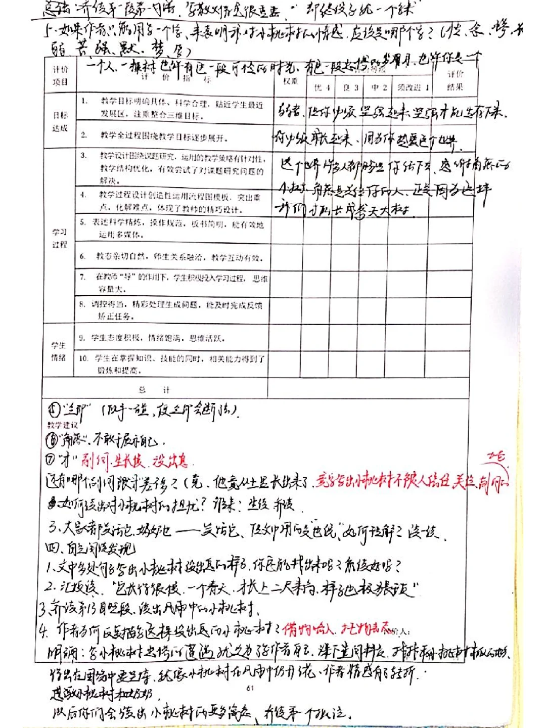 1.批注二:课文中一些描写反复出现,比如多次描写小桃树“没出息”。请同学们读第四段,找到表现小桃树没出息的句子。