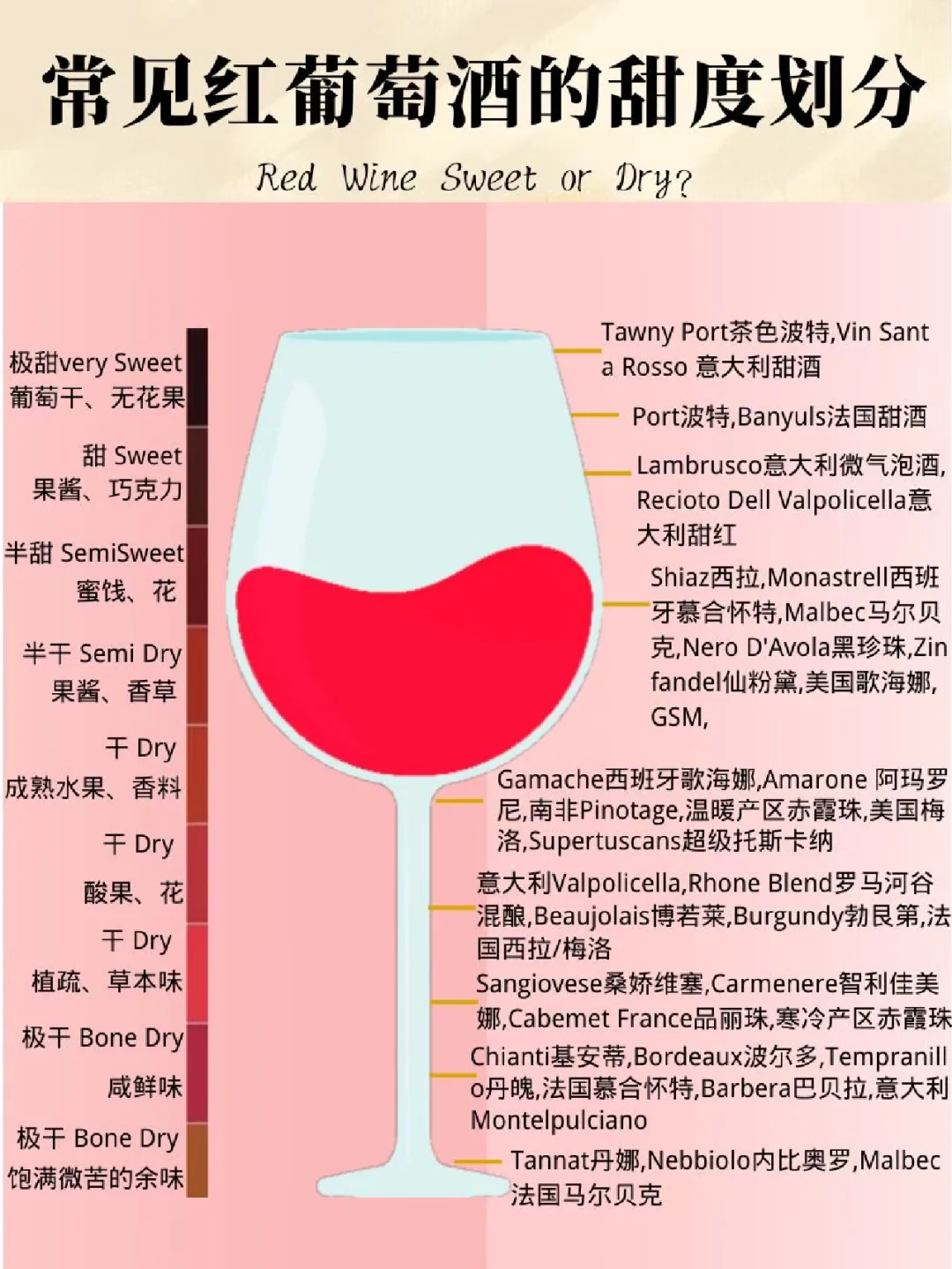 🌈当然,其实不同葡萄品种其实大部分都能酿成四种糖量类型的葡萄酒,图1,2的排序是一个普遍品种习惯分类,就是大部分如此,除了个别个例。