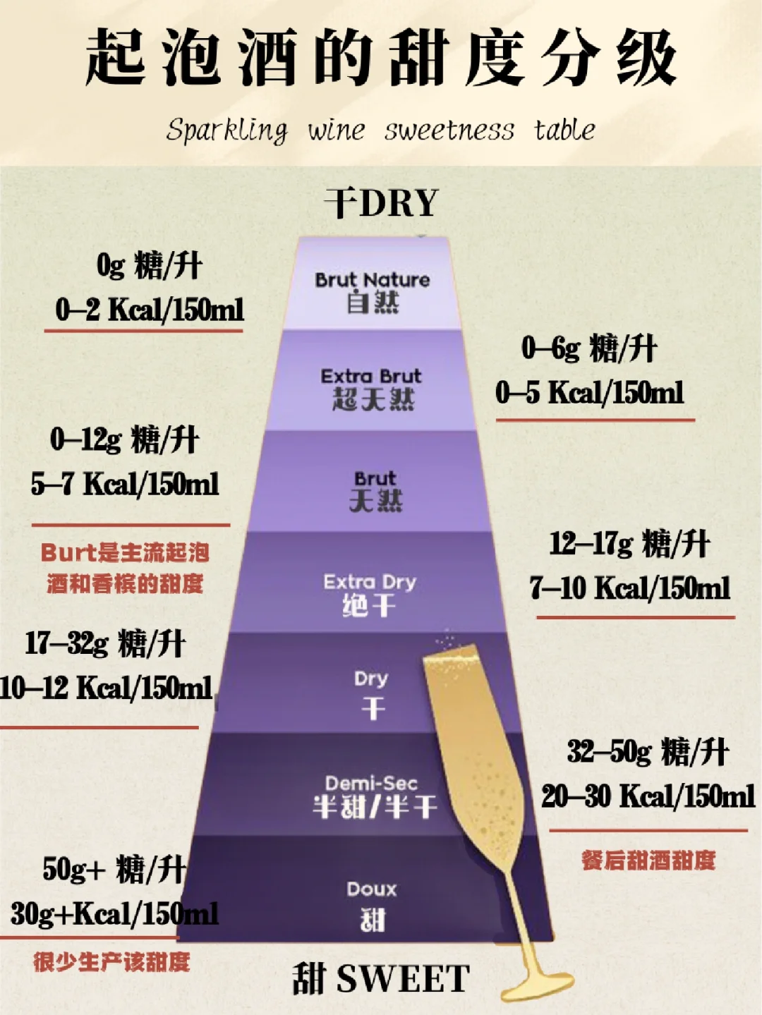 🌸绝干(Extra Dry):12-17g/L 糖量