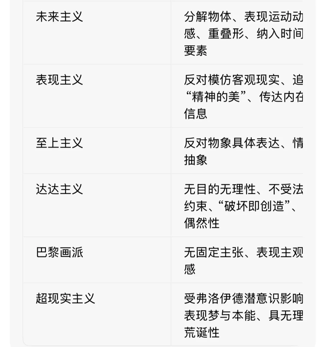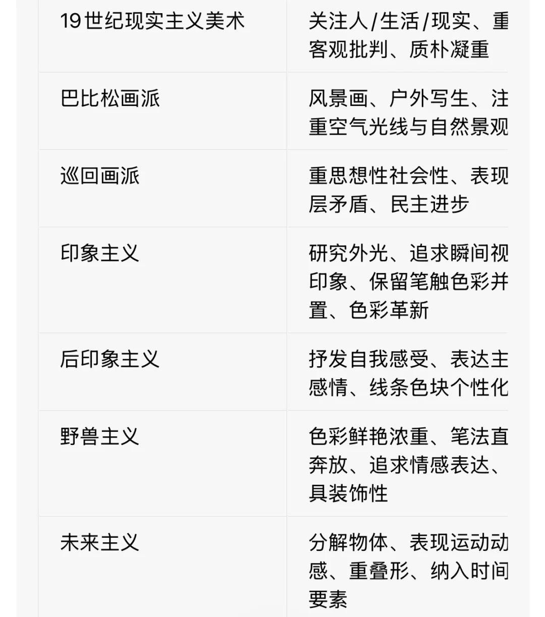 比较全面的一份流派特点 这一块考的非常非常高频!!但是又很难背 背得时候要简化➕对比记忆!!
