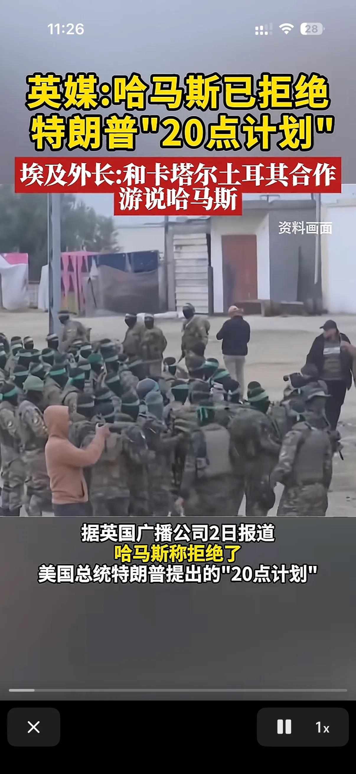 谁能想到哈马斯居然这么有勇气,直接就拒绝了美国特朗普提出来的20点计划,此前美国特朗普曾经为加沙地带冲突作出了一个停火计划,为哈马斯提了20点计划,声称,只要哈马斯接受这20点计划,那么以色肯定会立刻停火,那么加沙也会迎来和平! 当然了这20 点计划对哈马斯来说肯定是十分不利的,但是大家都以为,至少哈马斯会来个虚以委蛇,不会这么直接的拒绝特朗普的20条。 哪怕为了短暂的停火,也会表示可以谈! 但是这次哈马斯直接拒绝了20条,也同时拒绝了周边国家领导人的游说。 此前特朗普曾经公开说了,只要哈马斯敢拒绝20点计划,那么加沙的冲突将会加剧!看来未来加沙的难民将会迎来一波很大的交火冲突了!
