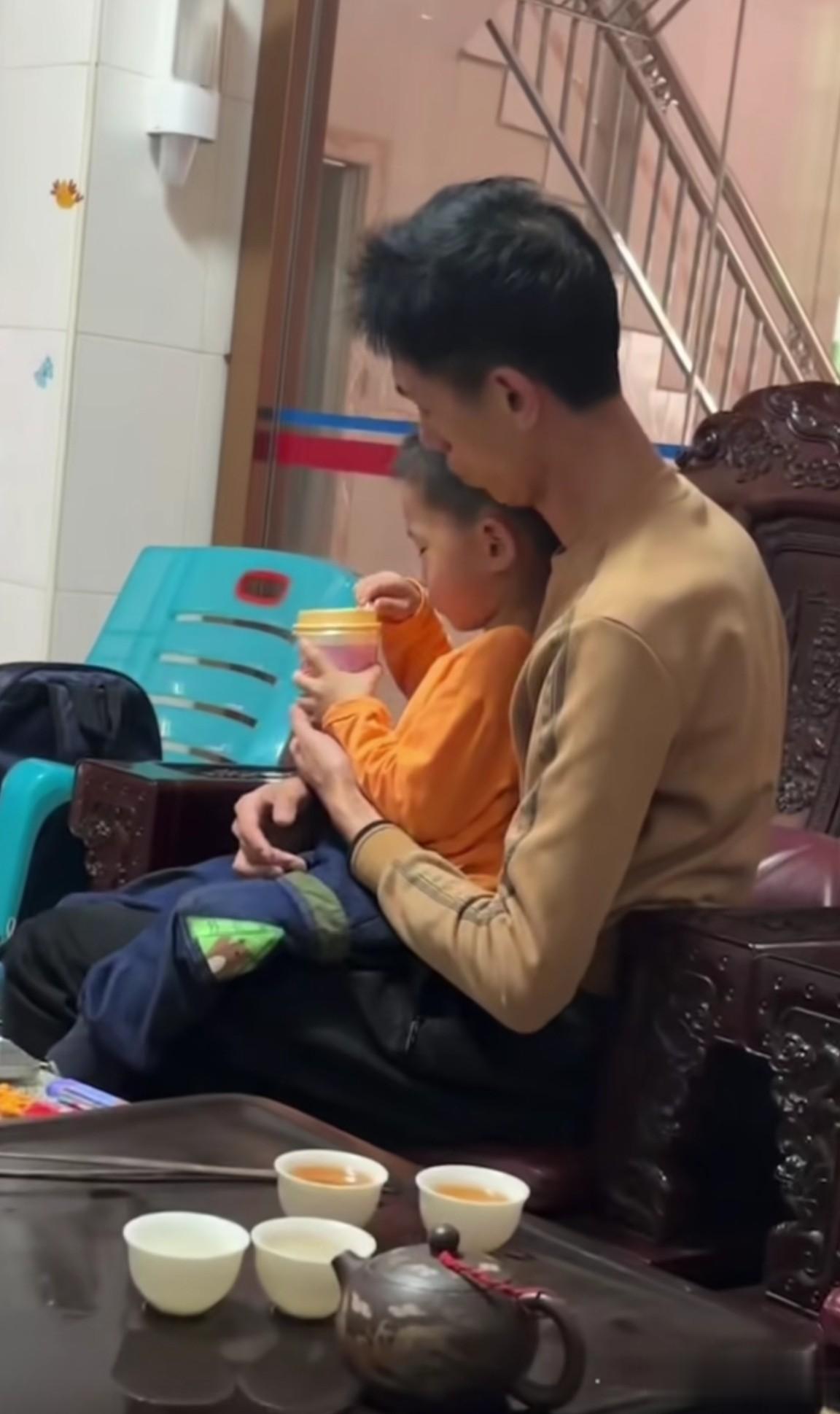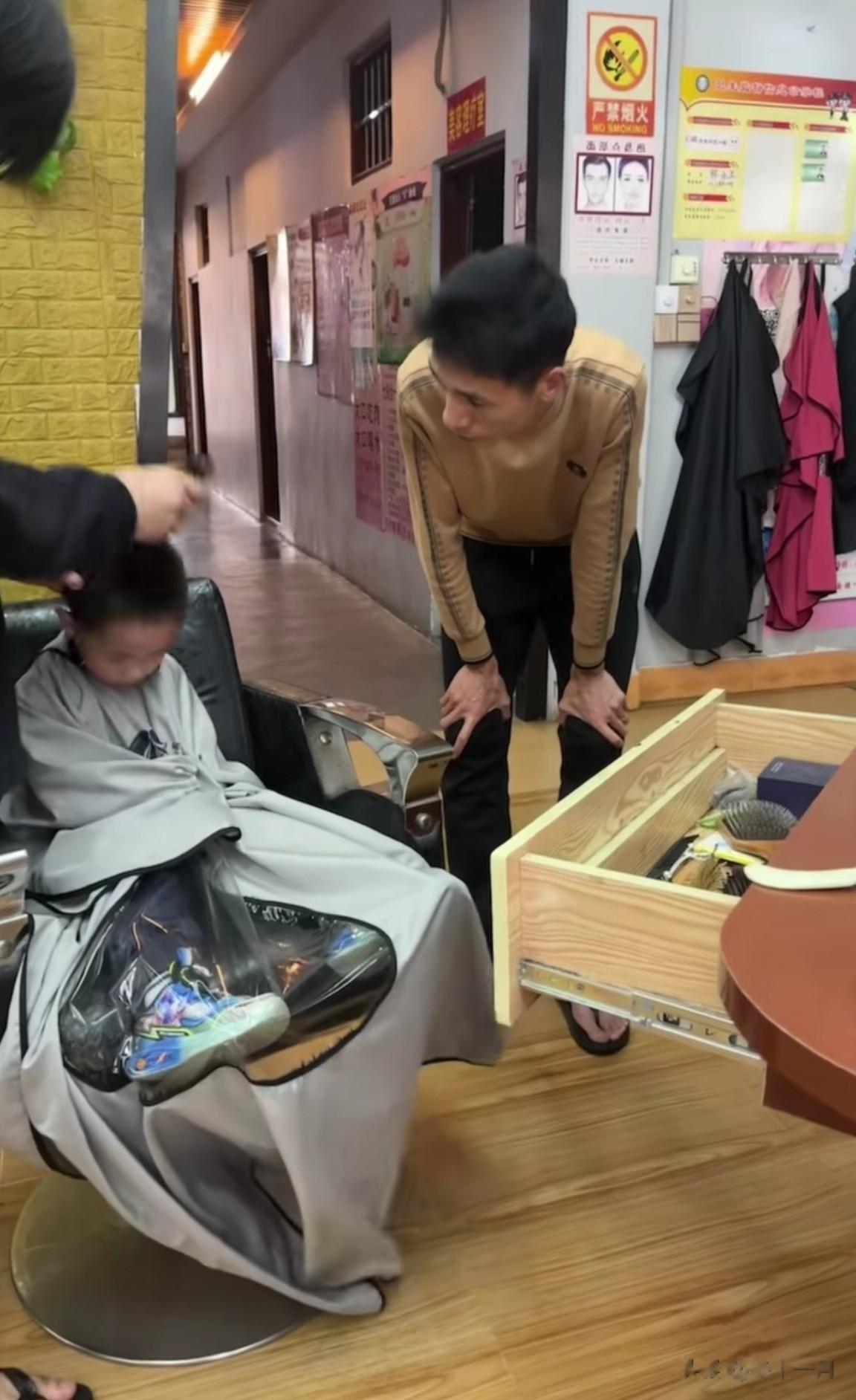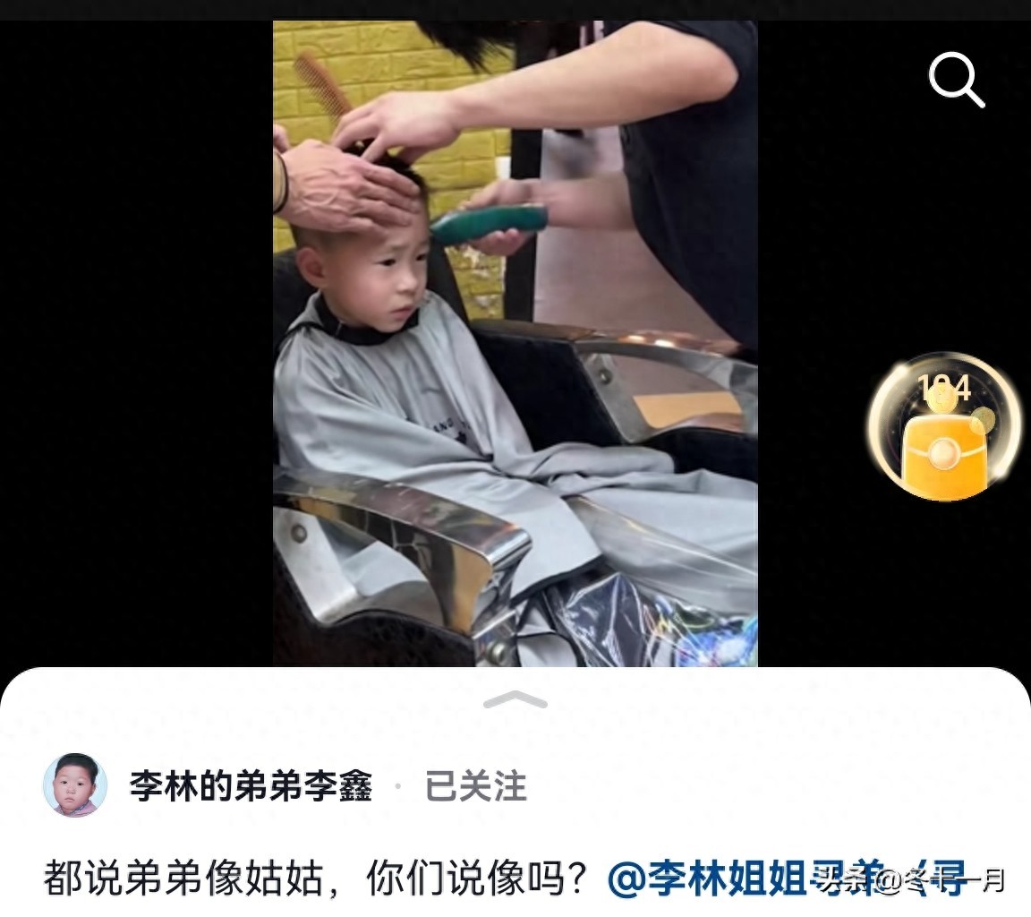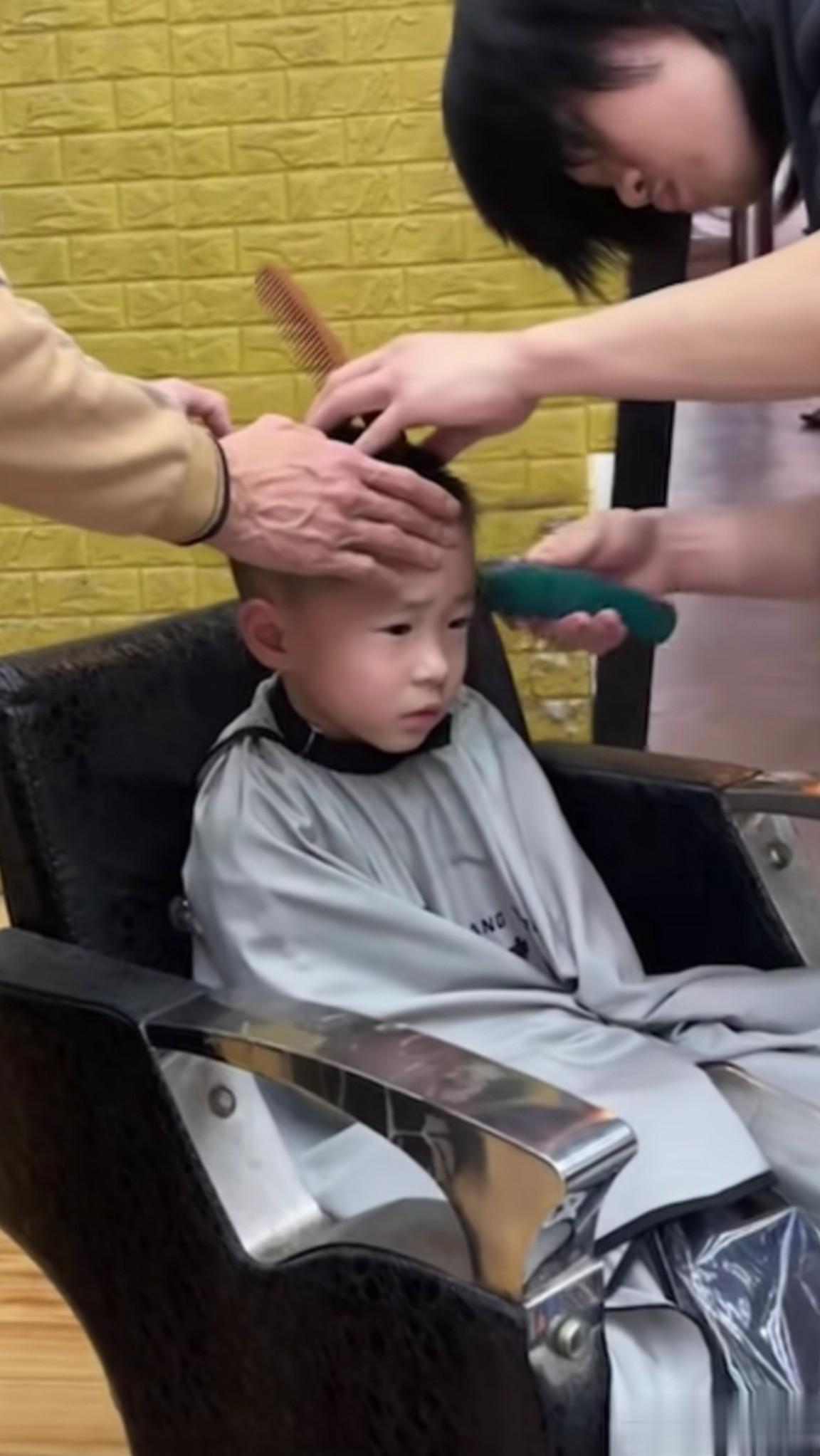 弟弟李林发出了一个最新视频,他带着儿子去理发。