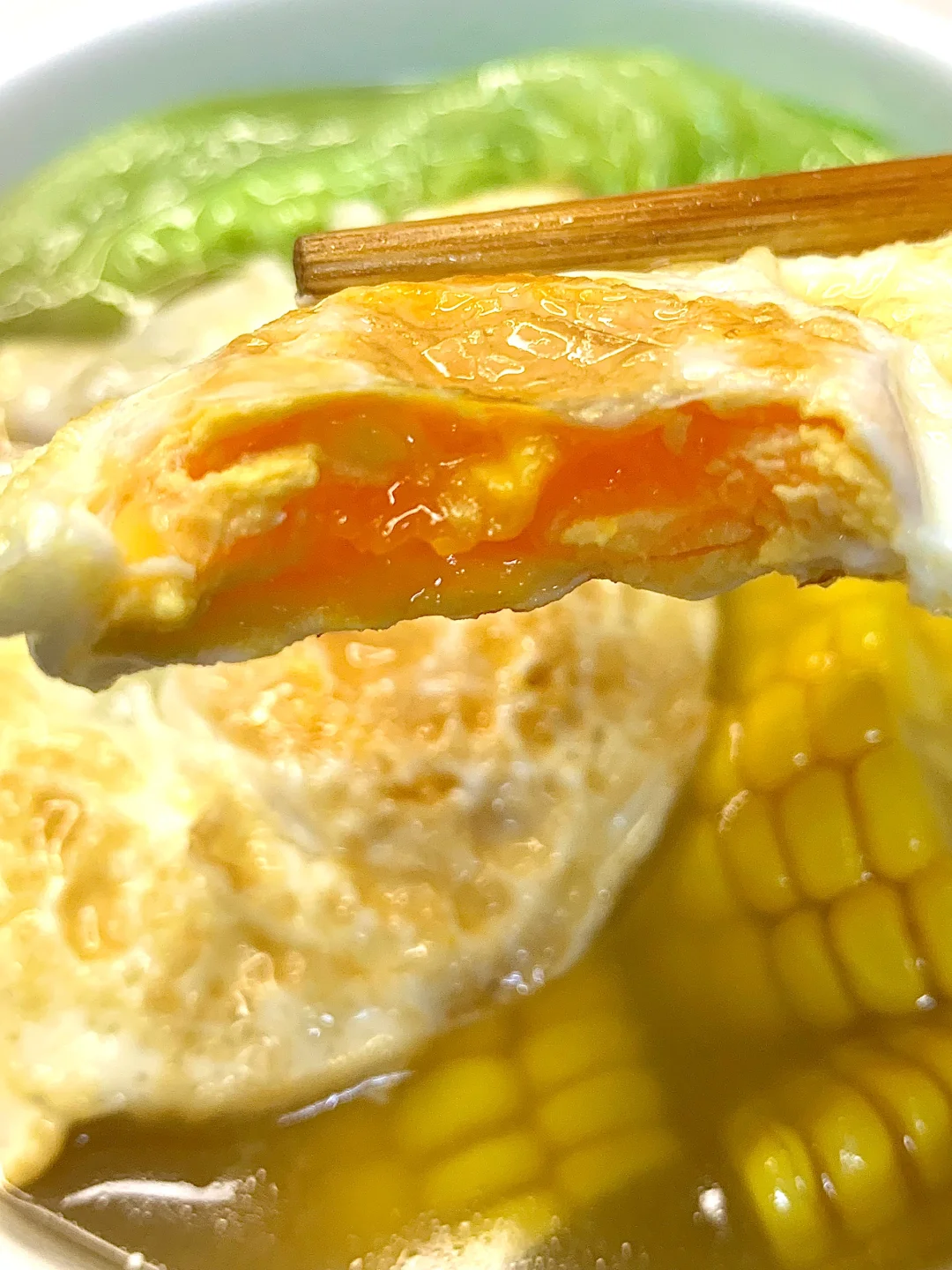 今天分享一道掉称汤! 「玉米鸡蛋汤」 不会做饭的也能3分钟轻松 搞定这个掉称汤! 汤汁清甜很有食欲[赞R] 太好喝了[色色R] 怪不得火爆! 🍃 [开箱R]食材:鸡蛋 玉米 生菜 🫕做法:热锅少油煎荷包蛋 加入玉米适量清水煮5分钟 加入生菜煮至断生 加适量盐和胡椒粉调味即可✅ 🍃 早上中午晚上都可以吃,晚上吃掉称效果好哦! 中午吃要记得适量搭配主食!