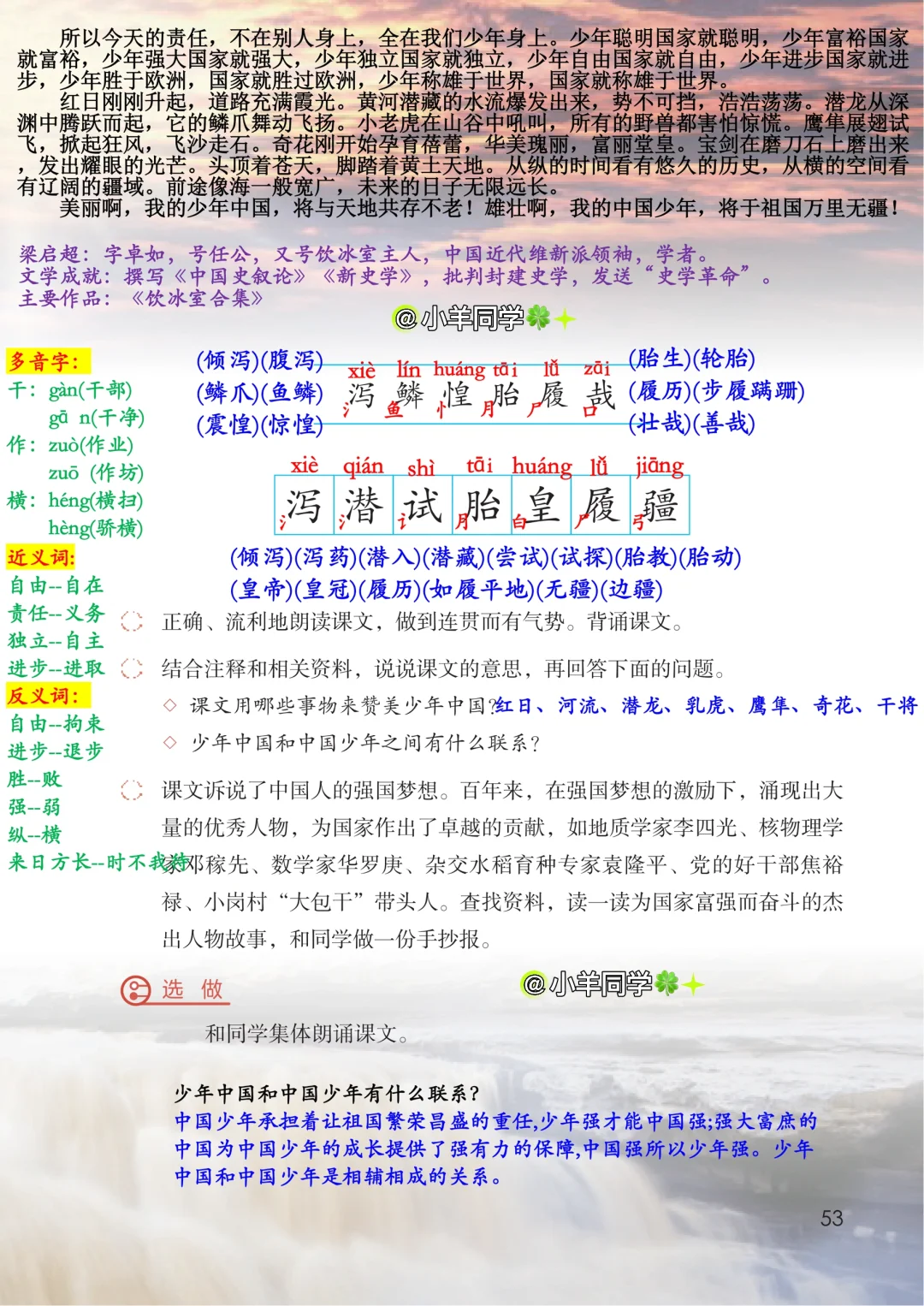 不懂就问有问必答 少年中国说 梁启超少年中国说 课堂笔记 小学语文课堂笔记 小学语文 笔记 语文笔记 四升五 四升五学习 五年级 五年级语文 五年级上册语文 五年级作文 小学五年级 五年级上册语文课堂笔记 五上13少年中国说