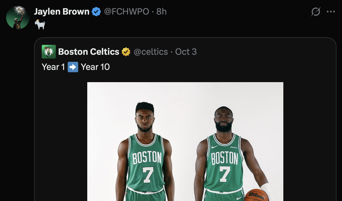 虎扑10月04日讯凯尔特人球员杰伦-布朗更新X,转发了一张自己现在跟新秀时期的对比照。