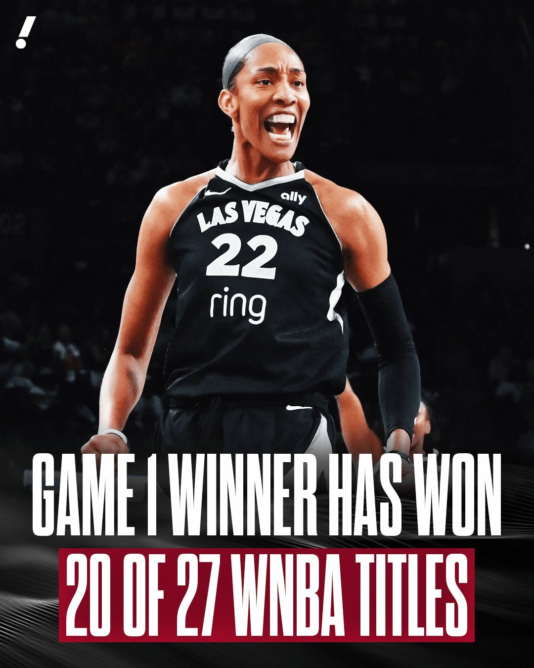 王牌今日险胜水星赢下总决赛G1,在WNBA此前27次总决赛历史上,赢下G1的球队有20次拿下最终的总冠军。