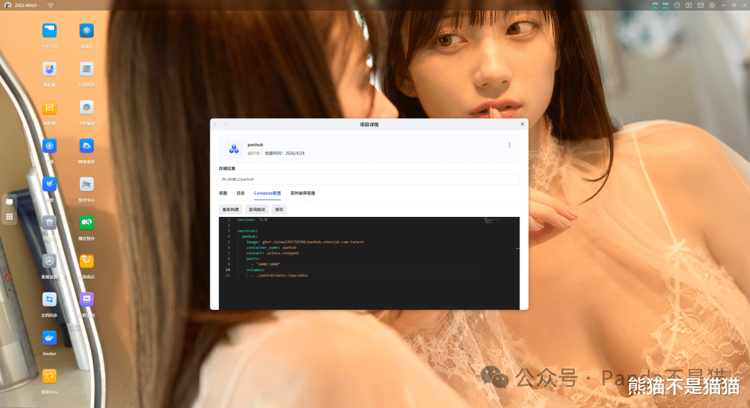 打开极空间的Docker,来到Compose界面,选择新建项目,然后将以下代码复制进去: