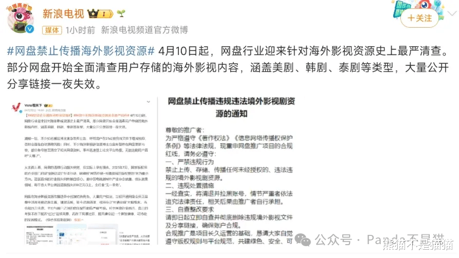 引言家人们,天塌了!从前几天夸克宣布肃清海外资源开始,最近各大网盘也都陆续宣布了对应的政策。从4月10日起,部分网盘会对平台上存储的美剧、韩剧、泰剧等未经授权的海外影视内容进行全面清理。