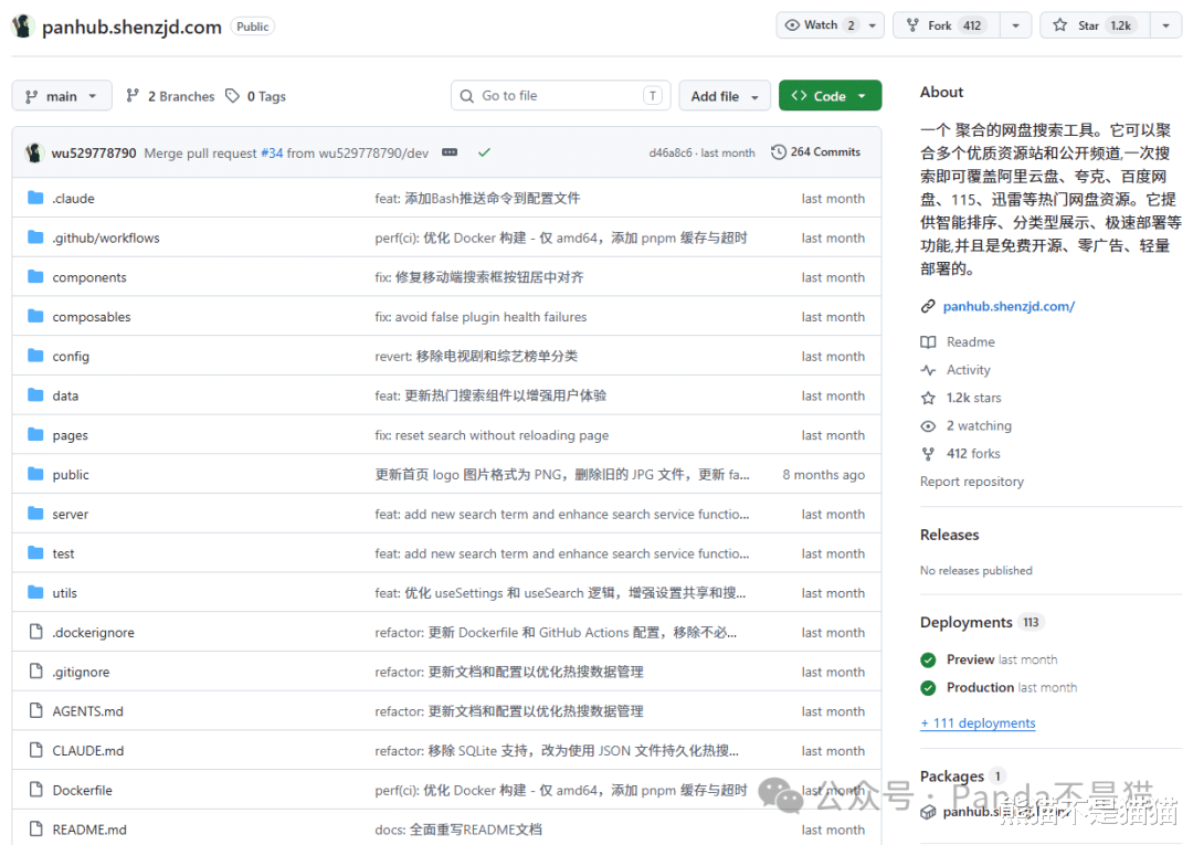 这次要介绍的是网盘资源聚合搜索项目。既然各大网盘都有限制,那咱们就增加搜索渠道,扩大网盘的搜索范围,总能找到自己想要的资源。PanHub就是这么一款项目,拥有全网网盘资源,支持即搜即得、聚合去重、免费开源。