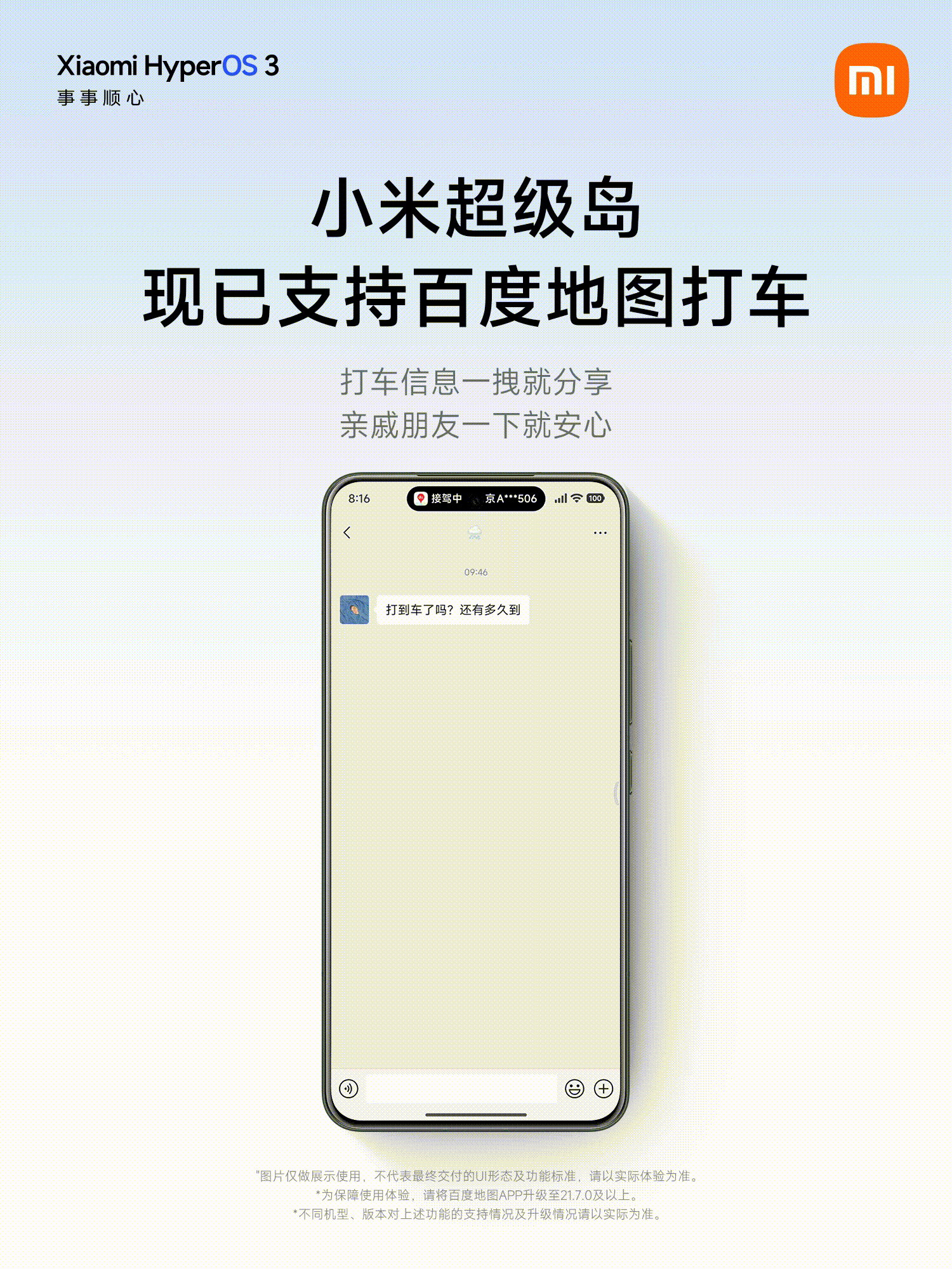 小米澎湃OS系统的“超级岛”功能首发于HyperOS3,针对行业目前主流的“岛”解决方案进行优化,定制超窄字体,且能够同时显示多个岛、灵活切换,支持时钟、电话等系统自带应用和航旅纵横、滴滴出行、哈啰单车等第三方应用。