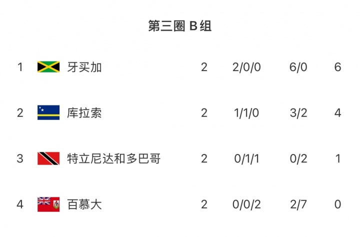 2026世界杯北美预选赛,目前库拉索在B组1胜1平排在第二,本月11日库拉索对阵牙买加,15日交手特立尼达和多巴哥。
