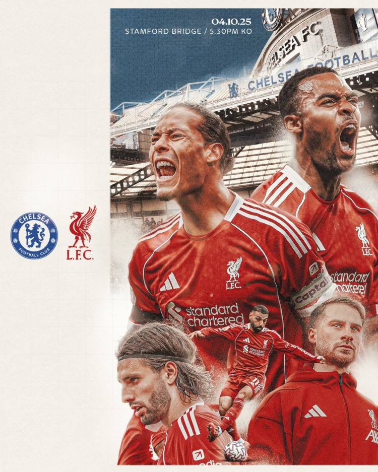 利物浦发布客战切尔西海报:范迪克、萨拉赫、赫拉芬贝赫出镜