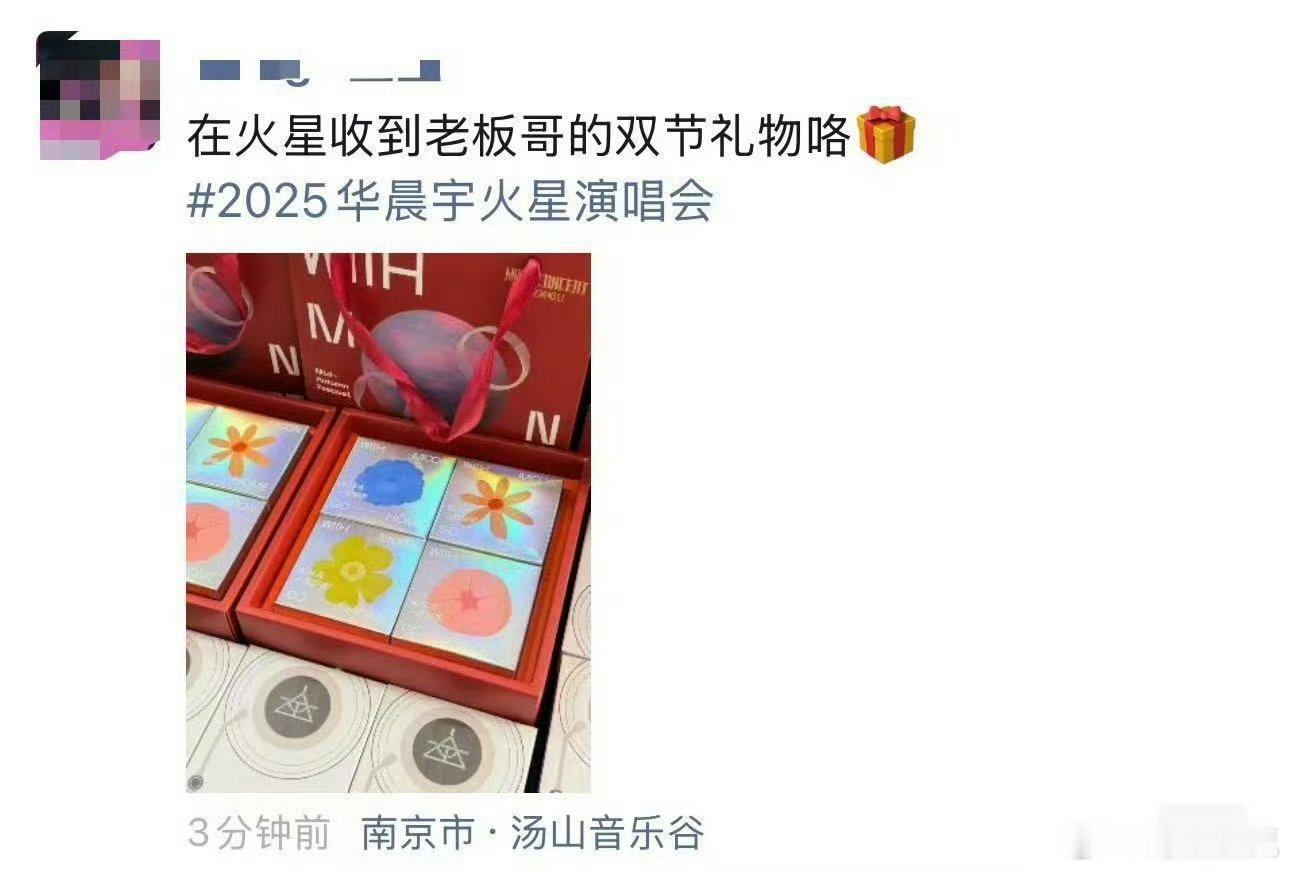 工作人员晒华晨宇送的双节礼物花花真好!月饼与充电宝既实用又暖心,让团队的每个人都