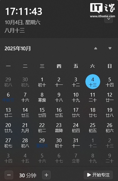 微软修复Win11通知中心Bug,日历新增读秒时钟