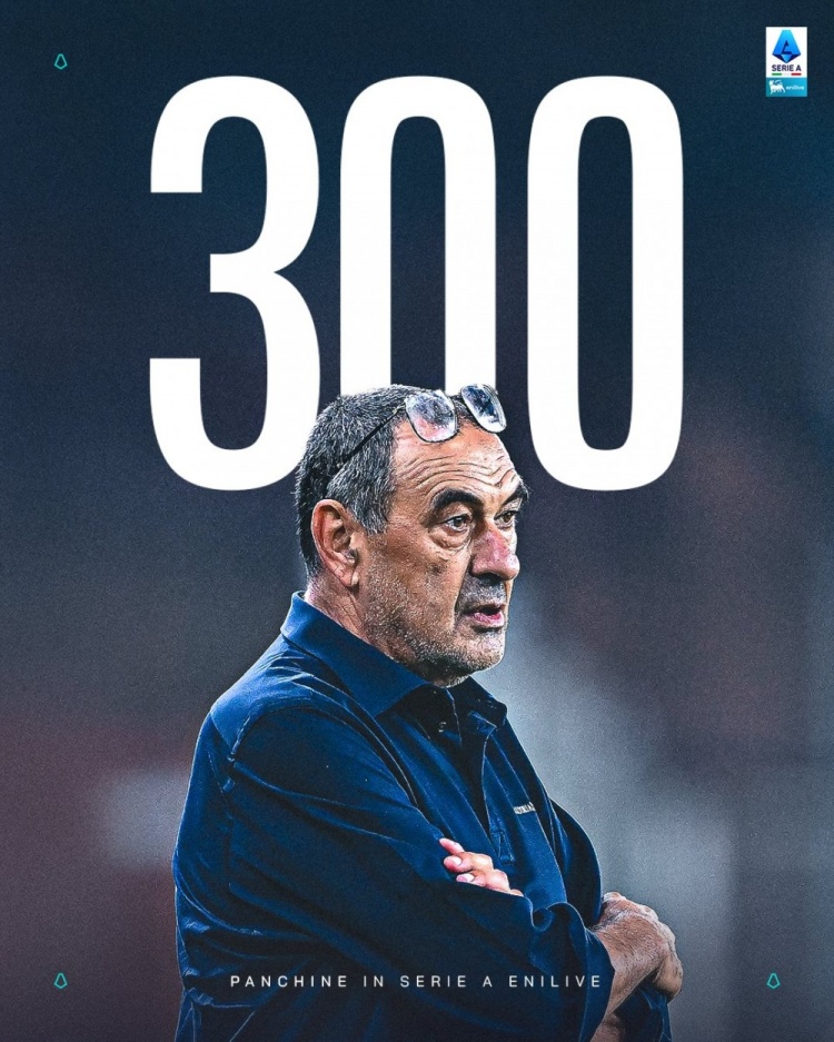 意甲官方社媒晒出萨里海报,祝贺萨里执教意甲300场里程碑。