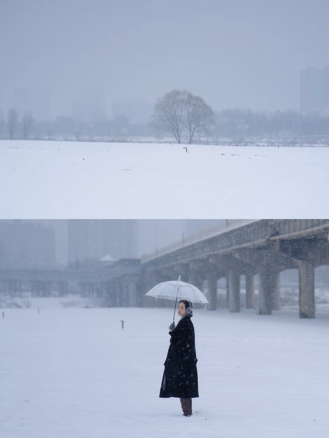 西安人羡慕宝鸡人的一天🥹 离秦岭近雪量果然更足 在福谭大桥拍到了想要的孤独感 大雪中天地白茫茫一片❄️ 空旷 辽阔 寂静到能听到雪和风的声音 为赶一场大雪坐上了前往宝鸡的火车 又因为大雪延误了班次 最终没赶上去秦岭的末班火车 留在宝鸡看了一场孤独的雪 开始期待这个冬天的第一场大雪❄️ 📍拍摄地点:图789福林堡北,其余福谭大桥 不辜负每个周末 冬日旅行收藏夹