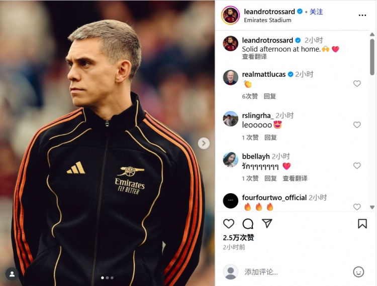 赛后,特罗萨德更新社媒晒出赛场照庆祝胜利,特罗萨德写道:主场踏实的下午