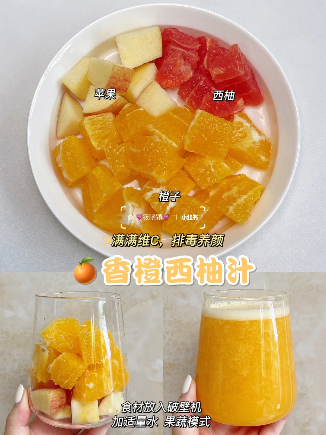 🔹橙子1个,西柚小半个,苹果1/4,纯净水适量