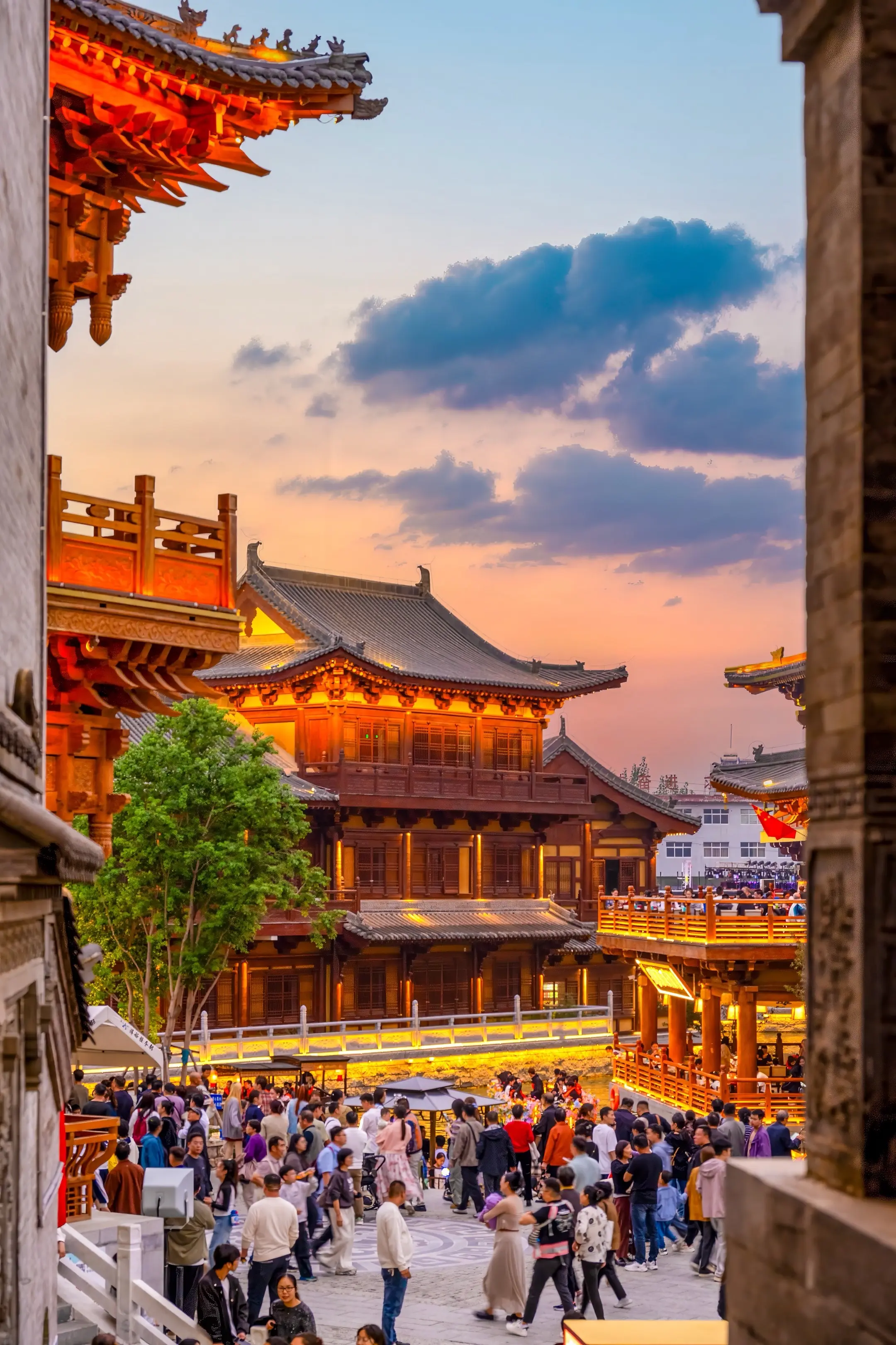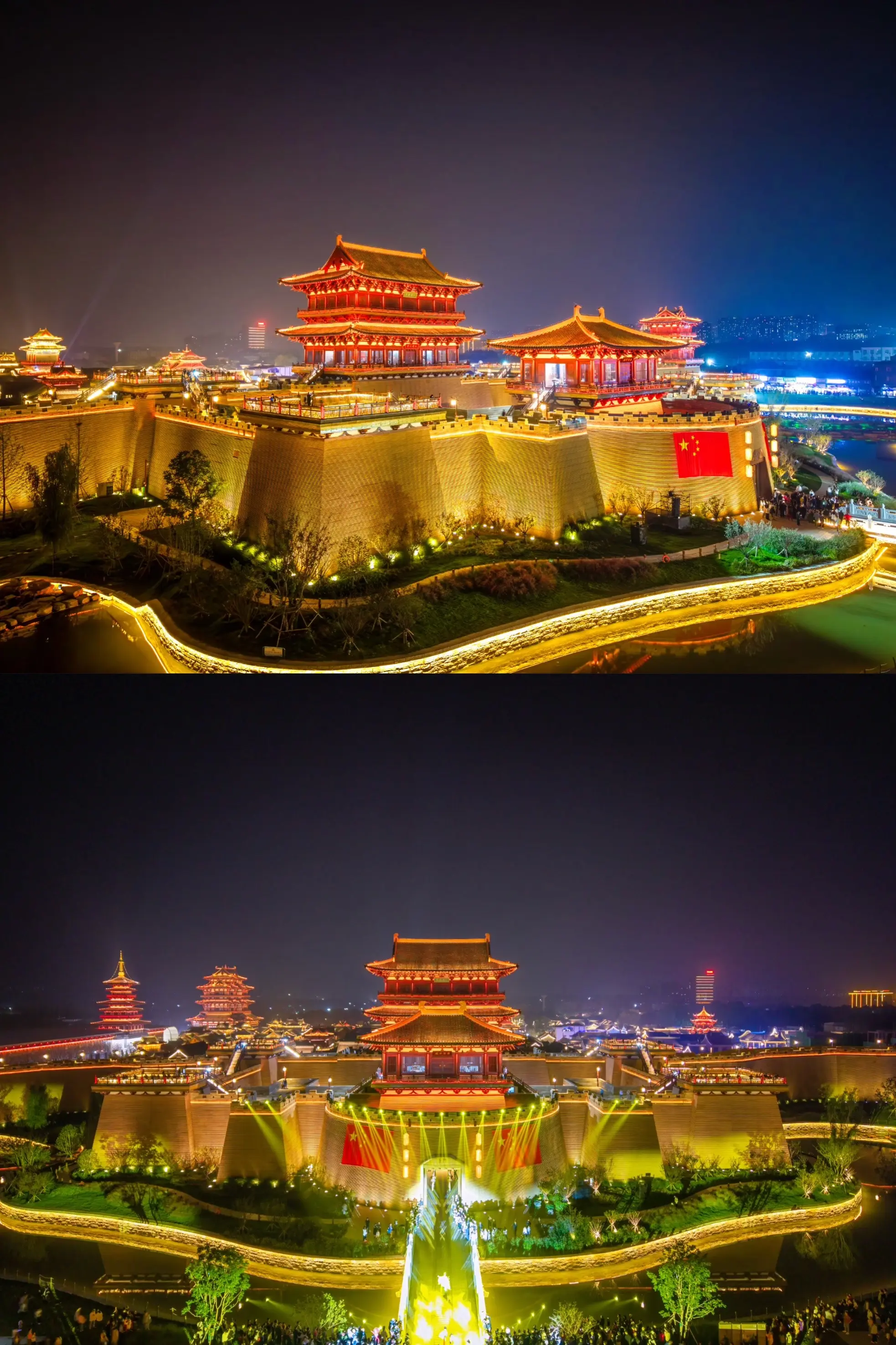 郑州周边夜景天花板。郑州40分钟直达的诗经里的城,免费逛还巨出片,华灯...