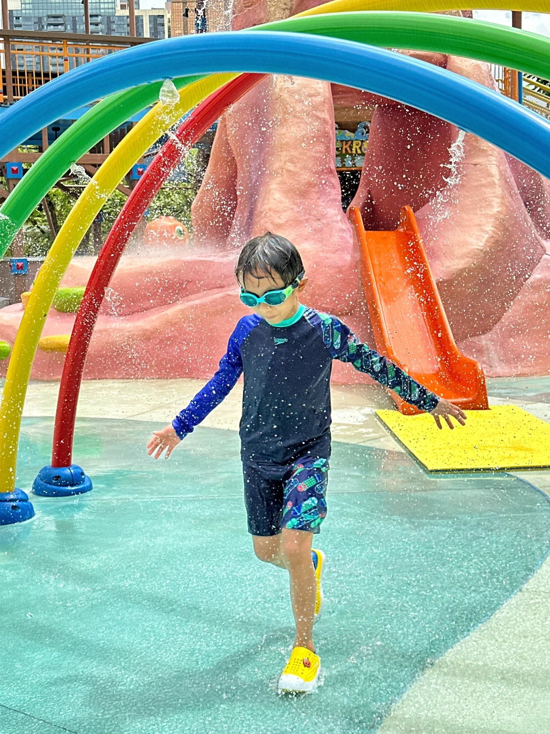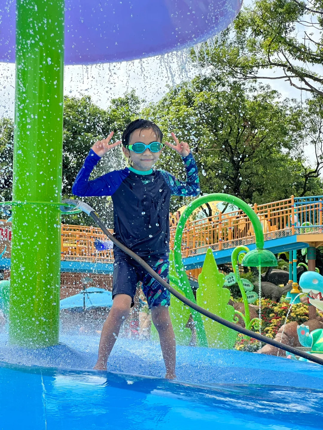 户外玩水少不了给孩子挑选一件合适的泳衣,Max今天穿的 花啦啦系列泳衣,颜色是宝蓝色的,跟水上乐园特别搭,特有的印花设计,颜值upup,而且还是高覆盖的设计,炎炎夏日也不担心晒伤; 贴身剪裁结合透气快干材质,一件水陆通行,陆地水中都可愉快玩耍。快来get小孩哥同款呀~