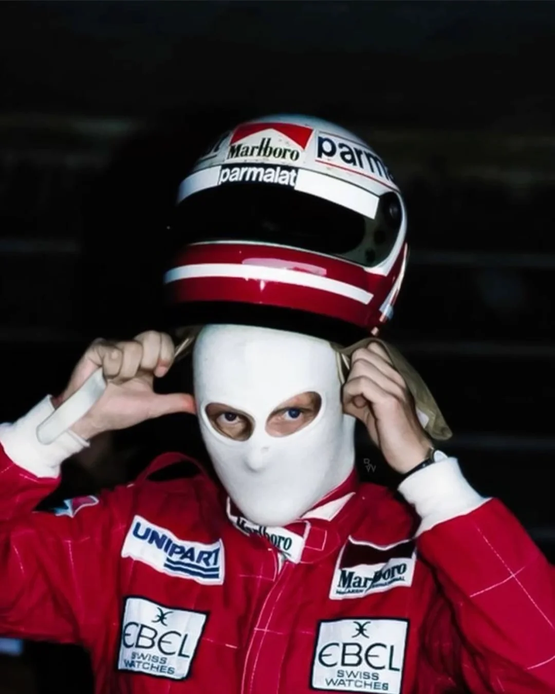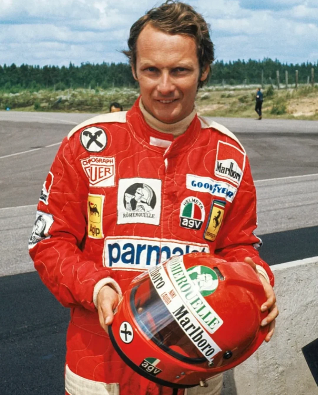 1976年纽伯格林事故:德国站第二圈因后悬挂故障撞车,赛车起火致其被困1分钟,面部严重烧伤、肺部受损,昏迷期间甚至接受临终祈祷。仅休6周即复出:头缠渗血绷带出战意大利站获第四名,震惊世界。同年日本站因暴雨退赛(认为赛道过于危险),最终以1分之差惜败宿敌詹姆斯·亨特,其壮举被誉“赛车史上最勇敢回归”,此事件2013年被改编为电影《极速风流》。