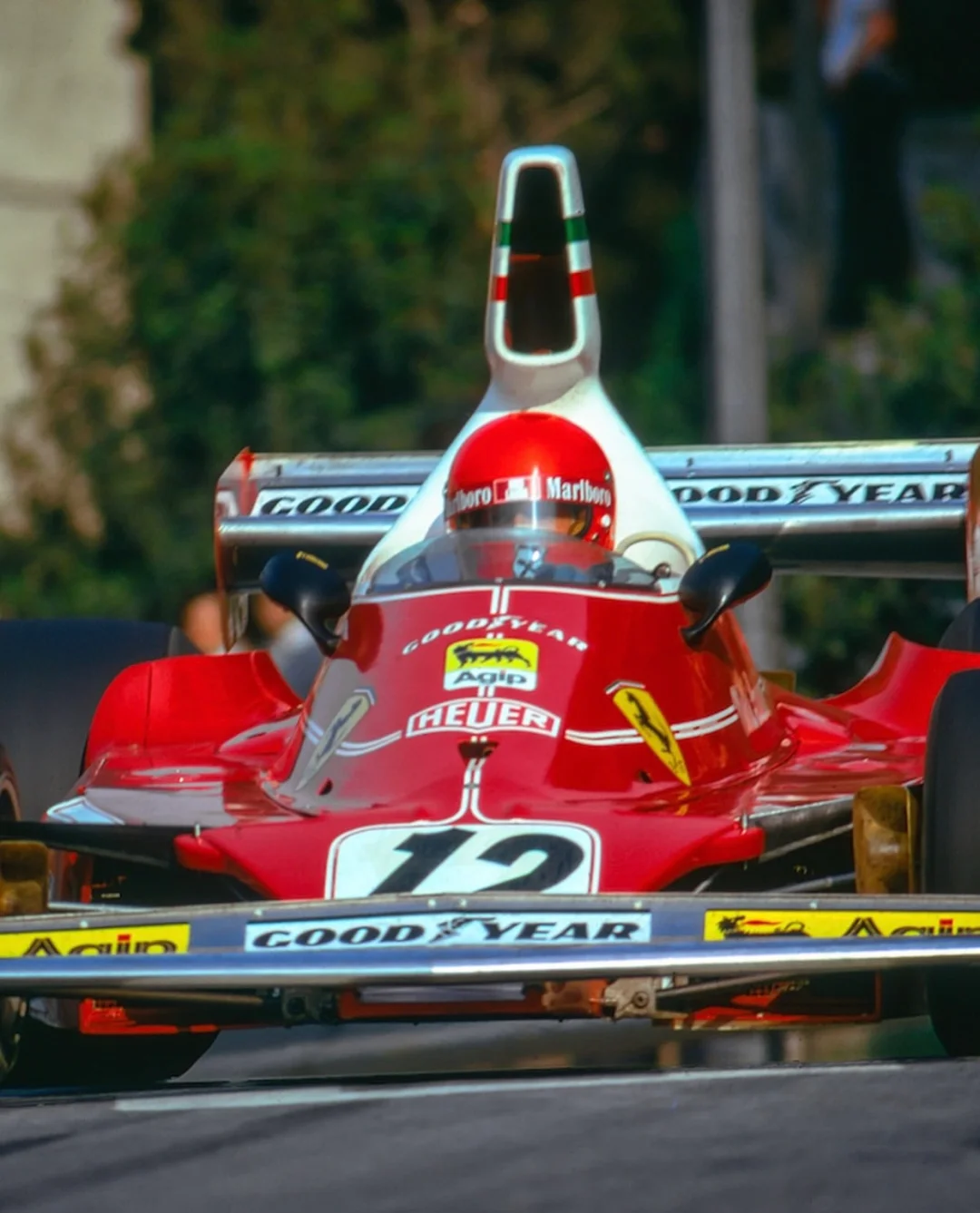1975年驾驶法拉利312T赛车,在前四站失利后连夺四冠,首度加冕世界冠军。1977年虽与车队关系破裂,仍以稳定完赛率(仅三场退赛)和三个分站冠军再夺总冠军。