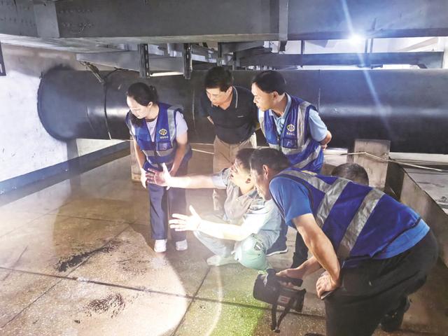 10月3日晚,南宁市邕江防洪排涝工程管理中心相关负责人带队在沙江泵站现场勘查泵站渗水情况,听取专家意见。(南宁市邕江防洪排涝工程管理中心供图)