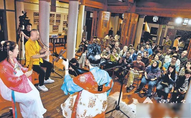 正音书院文化会客厅的南音表演吸引国内外客人(泉州晚报社资料图片)