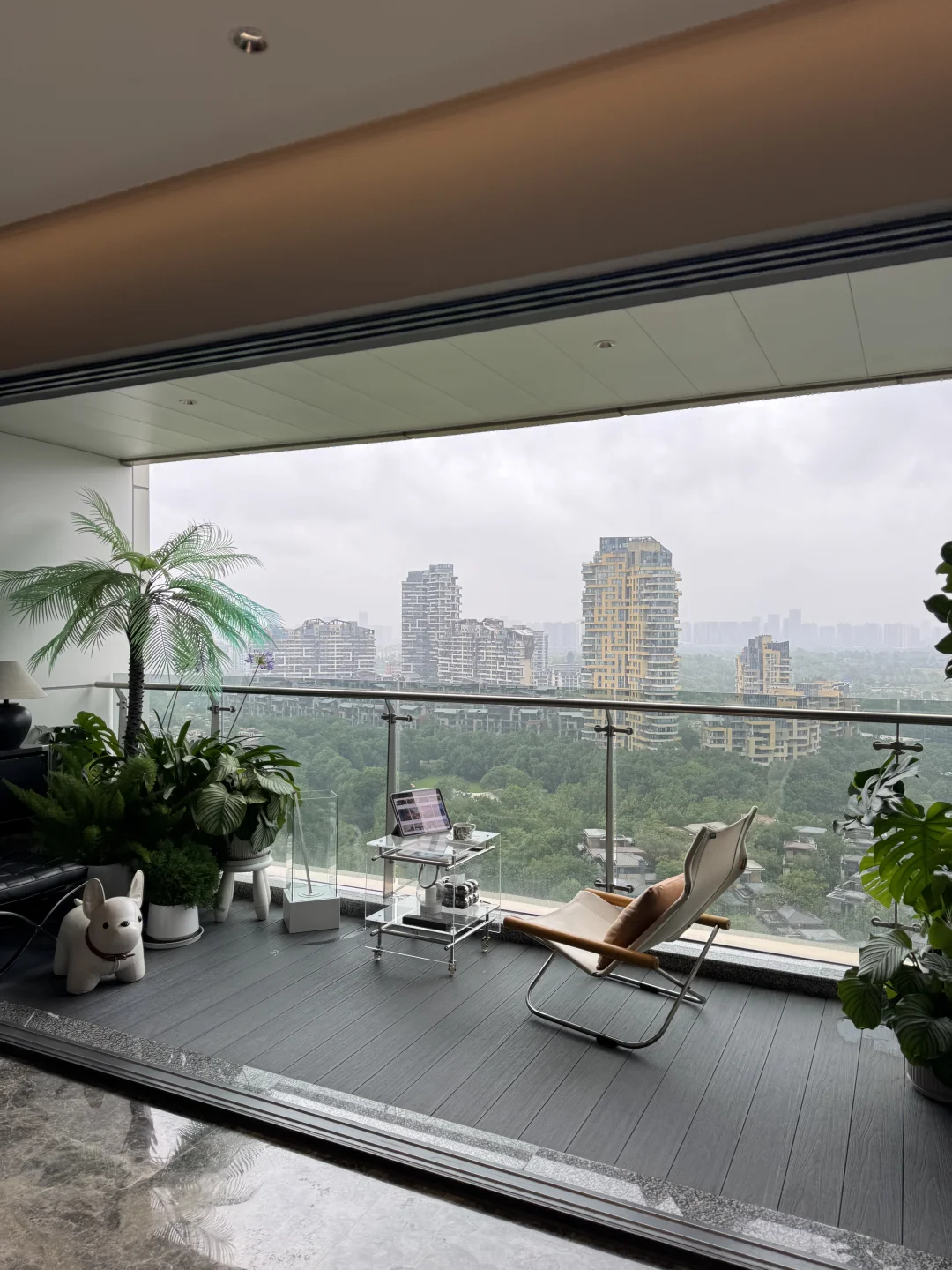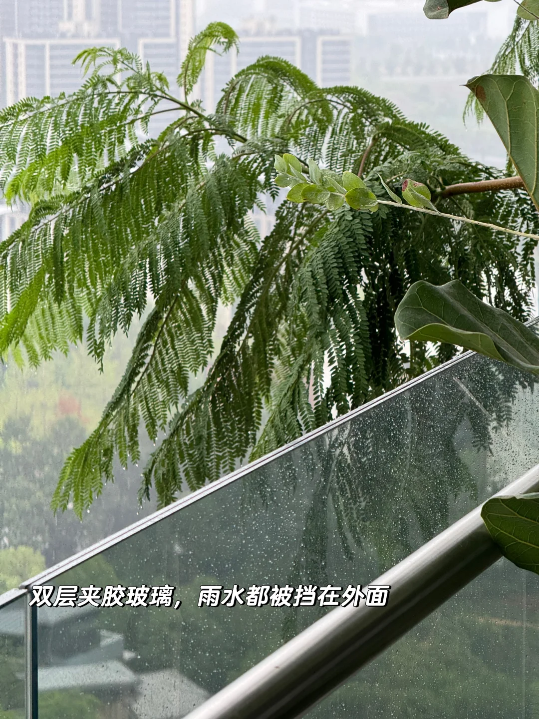 🙋🏻♀️:住了两年了,内陆城市没有台风,1.3米的玻璃栏杆挡住了90%的雨水(今天成都的暴风雨很大,但雨水没飘进来就是因为玻璃挡雨)