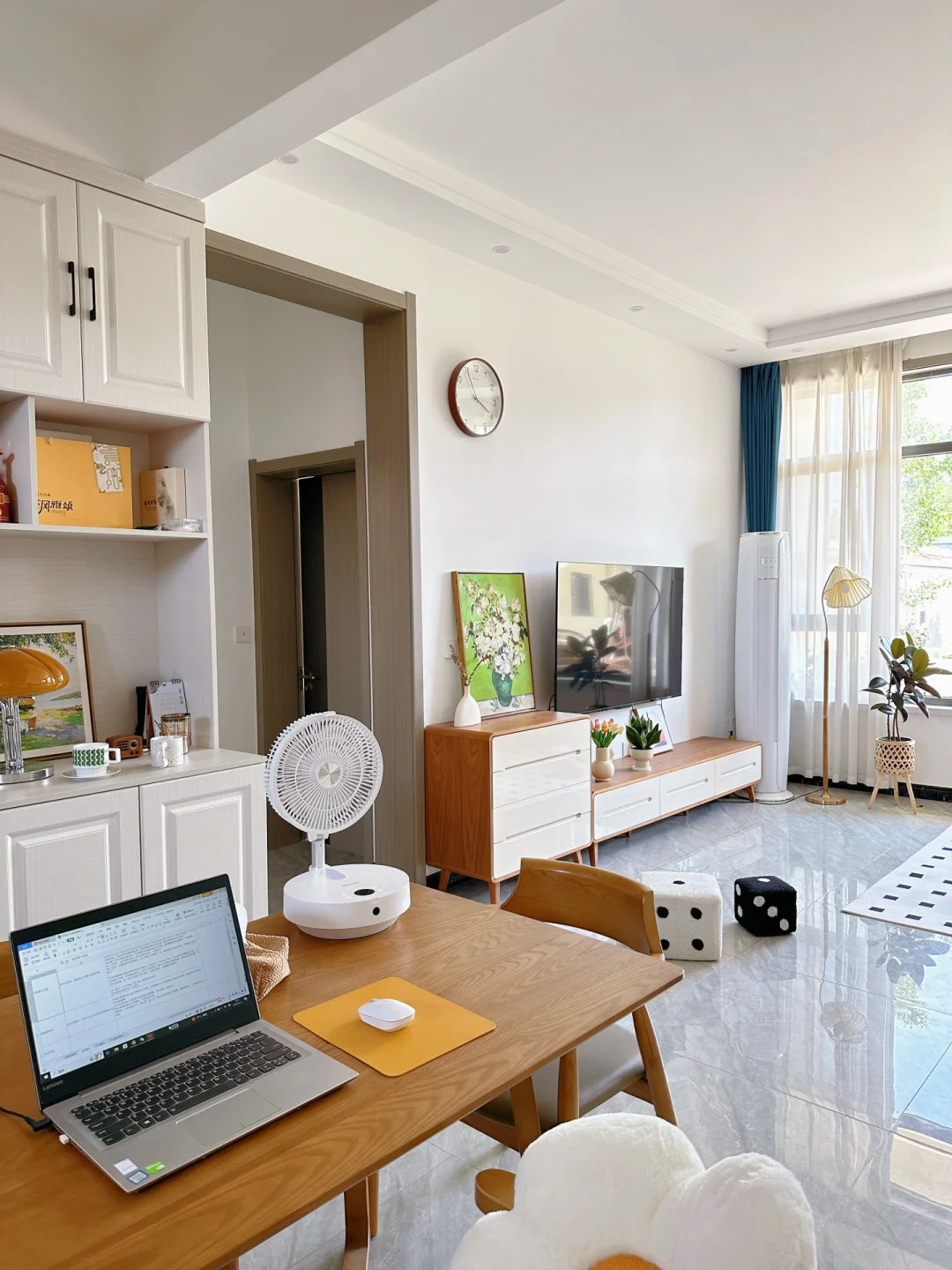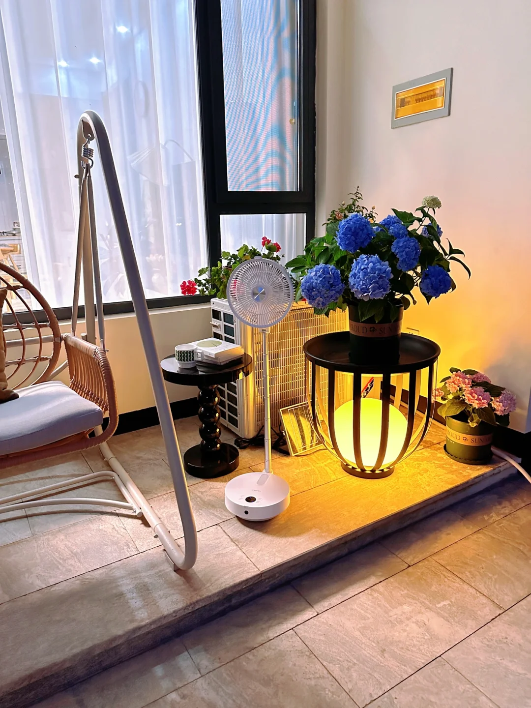 夏天喜欢在院子里吃饭和家人一起吹吹晚风,待上两小时~为了风扇搬动方便,特意挑了皇家惠人品牌的一款大电池容量的无线风扇,在院子里不插插头也可以用,充一次电大概可以用8-30个小时;10寸的风量很大也吹的比较远,风扇可以随意伸缩折叠和摇头,颜值高实用性强,不用的时候折叠起来又不占收纳空间,真的好方便~
