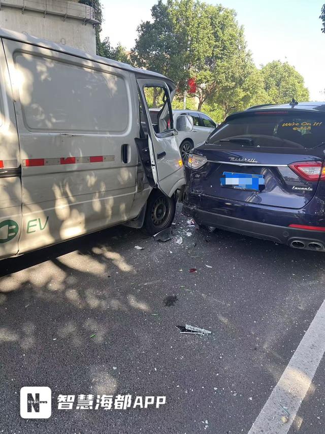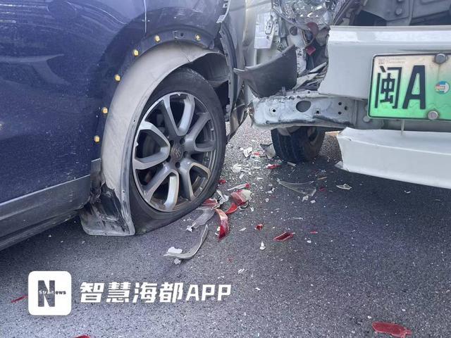 记者第一时间赶到现场,看到面包车车头严重损毁,前挡风玻璃整块脱落,碎裂的玻璃散落一地。被追尾的小车同样受损明显,其左后侧车身出现深度凹陷,左后轮爆胎。事故发生后,双方司机均留在现场,等待保险公司工作人员前来处理相关事宜。