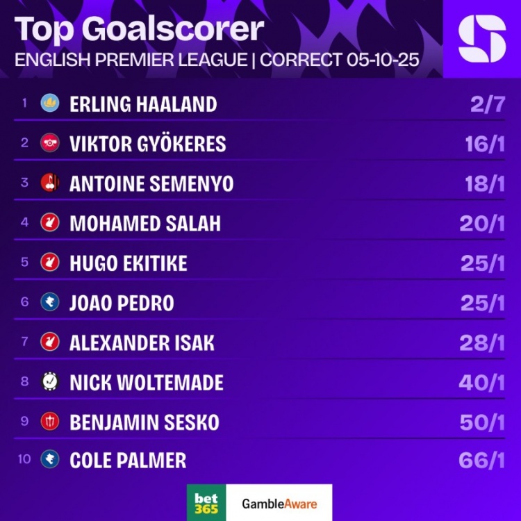 以下为英超金靴赔率情况: