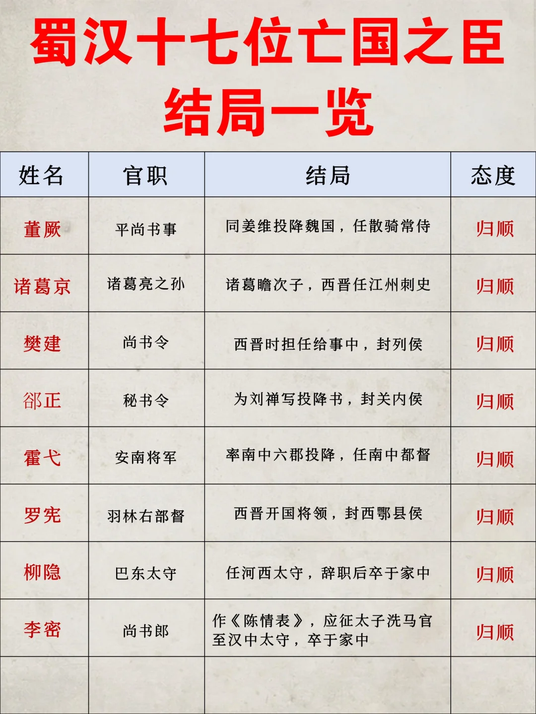 蜀汉17位亡国之臣结局一览‼️