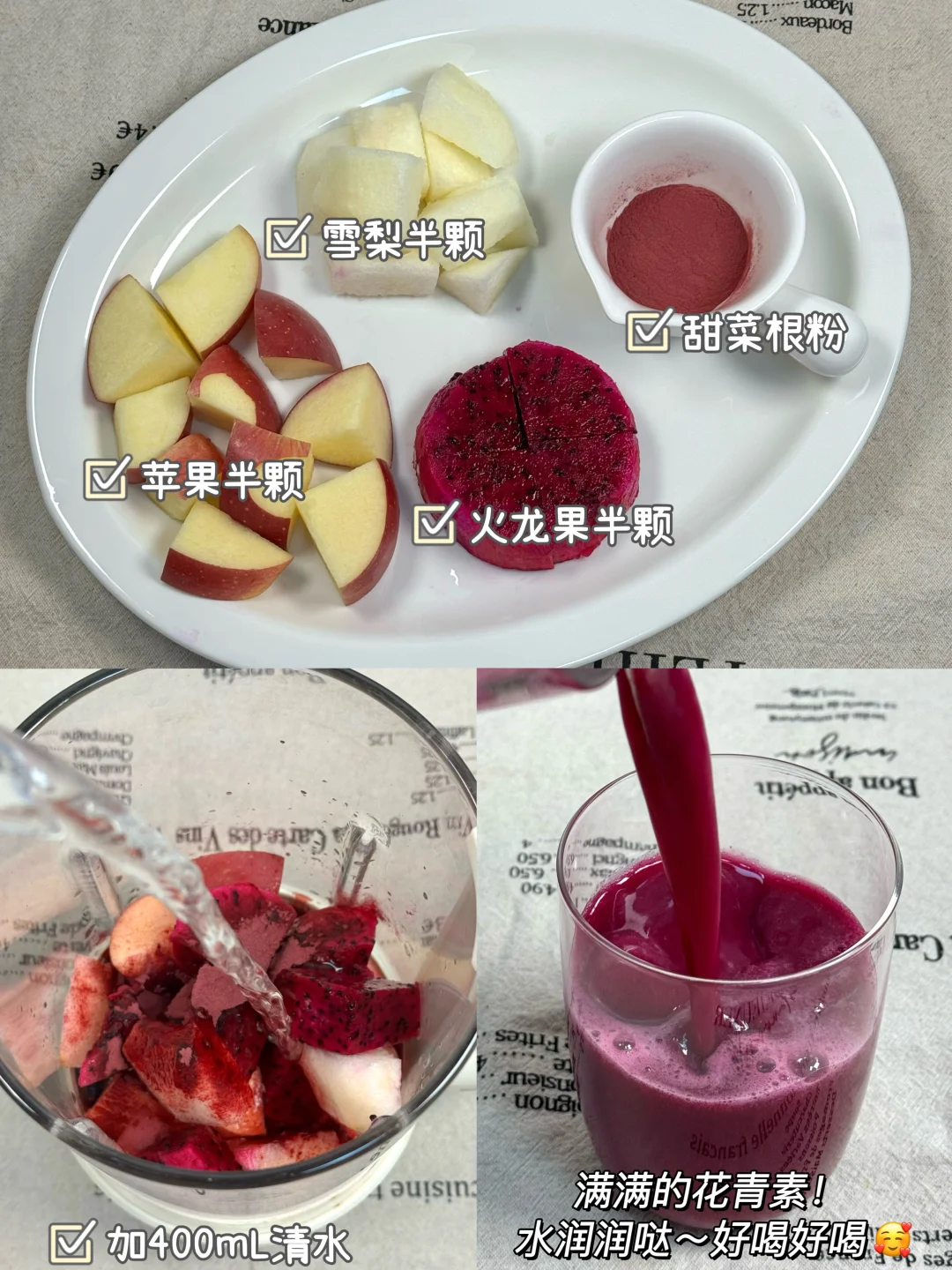 6️⃣苹果🍎➕雪梨🍐➕火龙果➕甜菜根粉